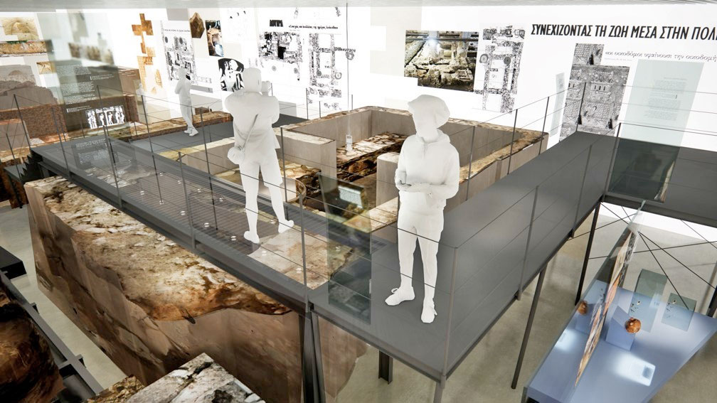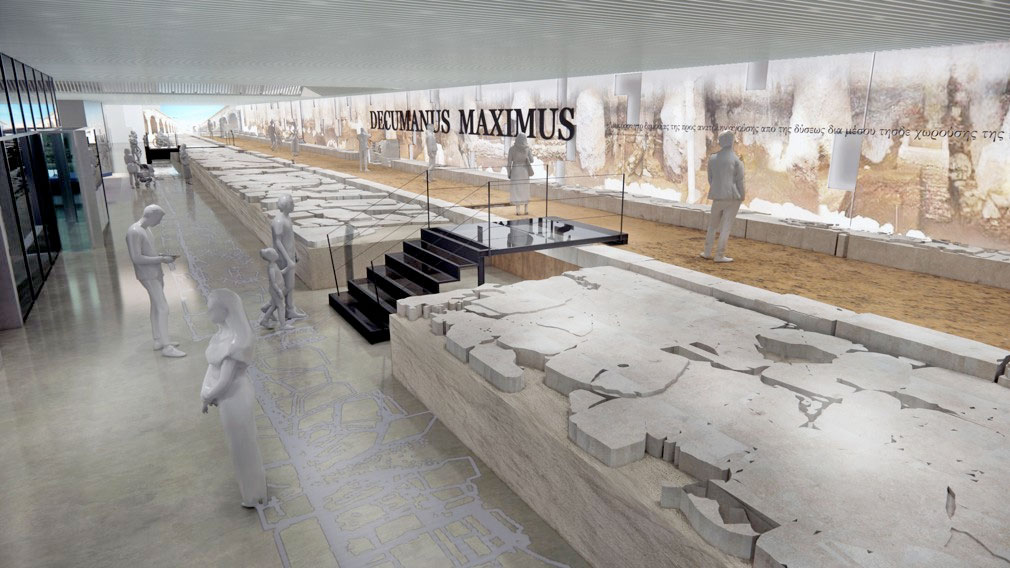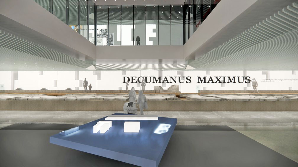 Οι προς έκθεση αρχαιότητες επιλέγονται για να αφηγηθούν την ιστορία της πόλης και των ανασκαφών του μεγάλου έργου. Η κεντρική ιδέα της έκθεσης εστιάζει στην πολυκεντρική οργάνωση, που στοιχειοθετεί την οικοδομική και τεχνολογική ιστορία της πόλης και συγχρόνως αναβιώνει τη φυσιογνωμία της. Οι αρχαιότητες διαχωρίζονται στα ευρήματα των εκτός των τειχών περιοχών και σε αυτά εντός των τειχών της πόλης. Οι αρχαιότητες από ανασκαφές των εντός των τειχών σταθμών οργανώνονται στις ενότητες: «Υποδομές της πόλης», «Οικοδομώντας την πόλη στον χρόνο», «Λουτρά», «Βιοτεχνικές Δραστηριότητες στην πόλη». Εξέχουσα θέση μεταξύ αυτών κατέχει το τμήμα του decumanus maximus, το οποίο προέρχεται από την ανασκαφή του σταθμού «Αγία Σοφία», και το οποίο δεν μπορεί να επανατοποθετηθεί μετά τις μεταβολές, το 2018, στο κέλυφος του σταθμού, καθώς και το ψηφιδωτό της λουτρικής εγκατάστασης που αποκαλύφθηκε σε υποκείμενα –της φάσης επανατοποθέτησης– στρώματα στον «σταθμό Βενιζέλου». Οι αρχαιότητες από τις ανασκαφές των εκτός των τειχών σταθμών του Μετρό αποτελούν μια ενότητα, όπου παρουσιάζονται διαφορετικές ταφικές κατασκευές εστιάζοντας το ενδιαφέρον στο κατασκευαστικό μέρος και όχι στο χρηστικό περιεχόμενο.