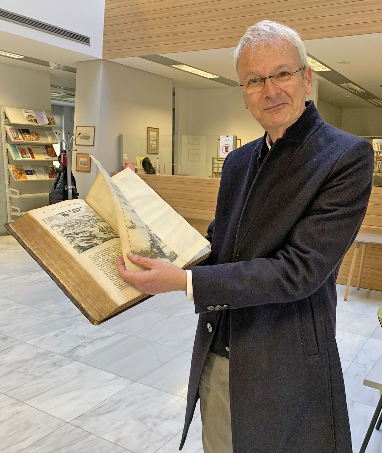 Όπως εξιστορεί: «Ο χάρτης στο βιβλίο του 1688 ήταν ένας από τους χάρτες-γκραβούρες που κατά καιρούς η δημοτική Αρχή στο Ρέθυμνο προσφέρει σε επίσημους επισκέπτες μέσα σε έναν υπέροχο φάκελο με ανατυπωμένες γκραβούρες. Αμέσως αναγνώρισα το Ρέθυμνο δεδομένου ότι ο ίδιος χάρτης είναι γνωστός από σχετική έκδοση του Αναγεννησιακού Φεστιβάλ. Σας μίλησα για τύχη, διότι ο εκδοτικός οίκος, ανάμεσα στα νησιά που ο συγγραφέας Dapper πραγματεύεται στις σελίδες του βιβλίου, επέλεξε τον χάρτη του Ρεθύμνου. Από ενδιαφέρον παρακολούθησα τη δημοπρασία με το βιβλίο να έχει ένα μεγάλο ποσό εκκίνησης. Προς έκπληξη μεγάλη δεν υπήρξε ενδιαφερόμενος για αγορά και αμέσως αισθάνθηκα πως όλα συγκλίνουν στο να φτάσει το συγκεκριμένο βιβλίο εκεί όπου και ανήκει… στο Ρέθυμνο».