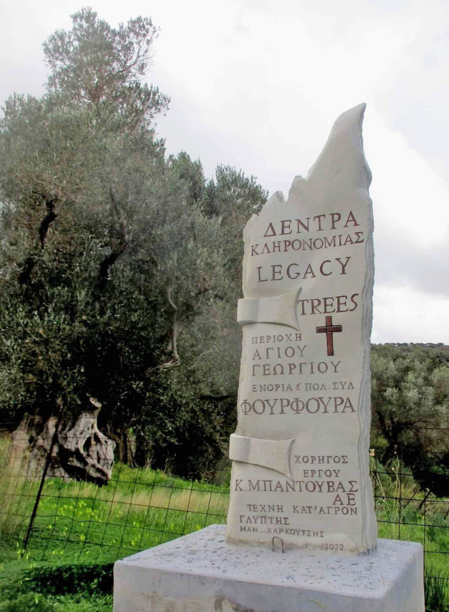 Μία νέα πρωτοβουλία για τη διατήρηση και την ανάδειξη των αρχαίων ελαιόδεντρων ξεκίνησε στην Κρήτη. Ο γλύπτης Μανώλης Χαρκούτσης, σε συνεργασία με τοπικές κοινωνίες και με την υποστήριξη της εταιρείας Κ. Μπαντουβάς ΑΕ, τοποθετεί γλυπτά–μονόλιθους κοντά σε αρχαίες ελιές, ηλικίας χιλιάδων ετών, ζωντανά μνημεία της φύσης. Είναι επιγραφές–ταυτότητες των ελαιόδεντρων, που χαρακτηρίζονται «Δέντρα Κληρονομιάς».