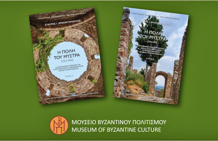 Το Σάββατο 4 Φεβρουαρίου και ώρα 18.00 στο αμφιθέατρο του Μουσείου Βυζαντινού Πολιτισμού «Μελίνα Μερκούρη» θα παρουσιαστεί η δίτομη έκδοση του Οργανισμού Διαχείρισης και Ανάπτυξης Πολιτιστικών Πόρων (ΟΔΑΠ) του Υπουργείου Πολιτισμού και Αθλητισμού Η πόλη του Μυστρά (1262-1460). Η πολεοδομική οργάνωση και η λειτουργία ενός υστεροβυζαντινού αστικού συγκροτήματος, του Σταύρου Ι. Αρβανιτόπουλου.