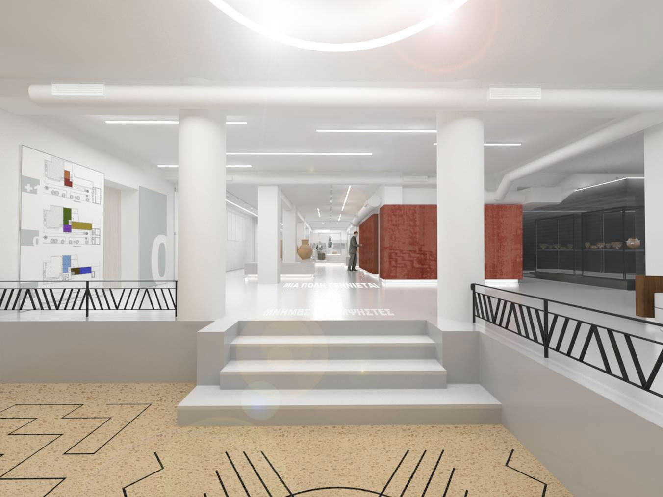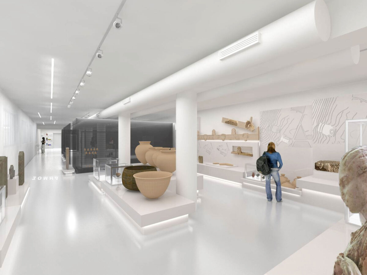 Ο μουσειογραφικός σχεδιασμός στοχεύει να εξυπηρετήσει τις γενικές αρχές οργάνωσης ενός μουσειακού χώρου με ενιαία αντιμετώπιση και λειτουργική συνοχή του συνόλου, σύγχρονο εξοπλισμό, άνετη κίνηση, ασφάλεια και καθολική προσβασιμότητα του κοινού. Η μεταφορά της ιδέας του ιστορικού και αρχαιολογικού παλίμψηστου στο χώρο, χρησιμοποιεί ως εργαλεία την έκθεση των ευρημάτων σε διαφορετικές στάθμες, τη διαφάνεια των κατασκευών με την οποία ενισχύεται η δυνατότητα της οπτικής επικοινωνίας ανάμεσα στις θεματικές ενότητες, καθώς και τη δυνατότητα ανάγνωσης του αρχαιολογικού υλικού προοπτικά, μέσα από την οπτική αλληλεπίδραση, ενσωμάτωση στις εκθεσιακές κατασκευές ψηφιακών τεχνολογιών (ακουστικά εκθέματα, διαδραστικές εφαρμογές κ.λπ.).