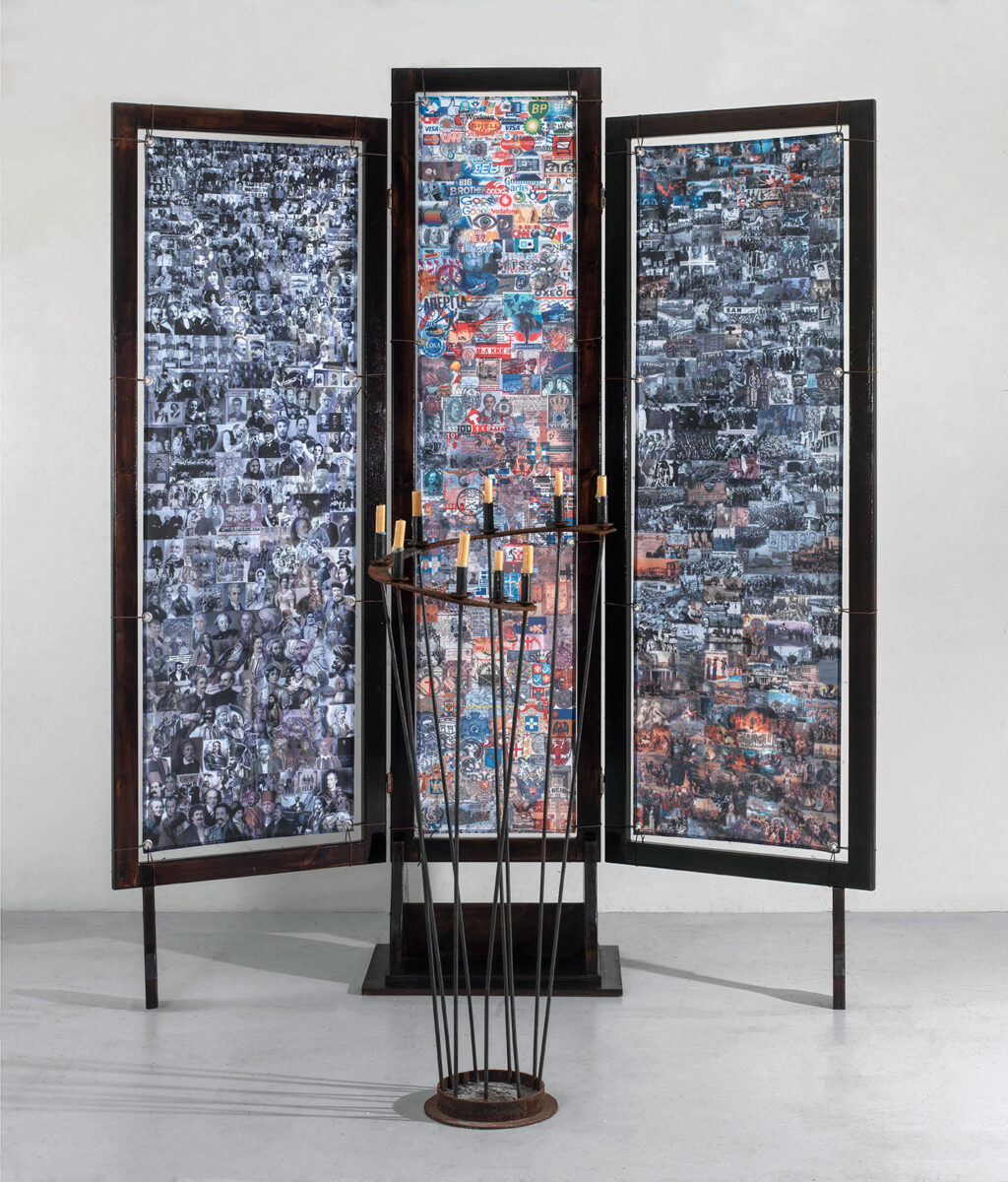 Στην πρώτη ενότητα, το σιδερένιο γλυπτό μανουάλι με τα σβησμένα κεριά και το ξύλινο «Τέμπλο», εν είδει μεγεθυμένου λειτουργικού εκκλησιαστικού τριπτύχου με ιστορικά πρόσωπα, τα αντίστοιχα ιστορικά γεγονότα και τα σχετικά με αυτά σύμβολα, επιχειρούν να καταγράψουν τις αλλαγές που έχουν γίνει στον ελλαδικό χώρο τα τελευταία διακόσια χρόνια, σε εθνικό αλλά και παγκόσμιο επίπεδο.