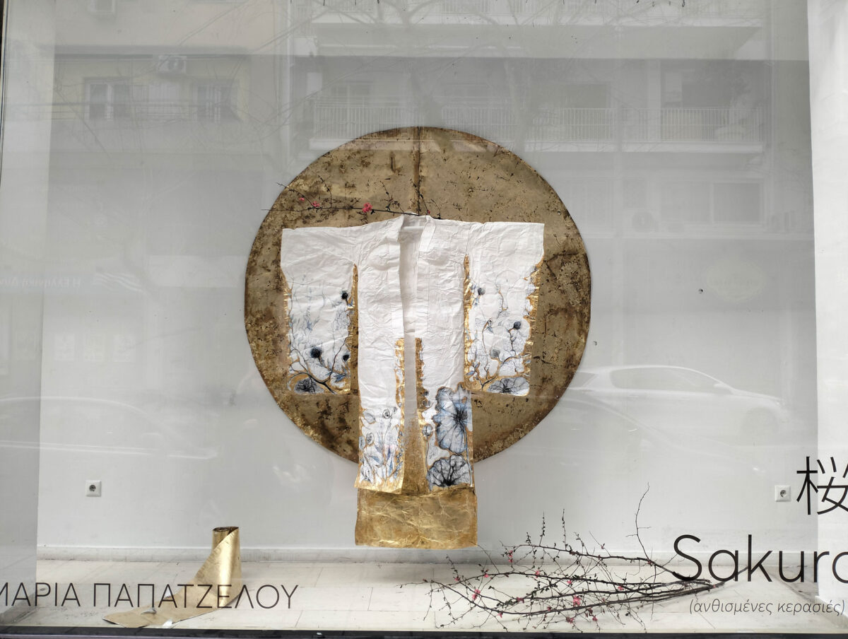 Κιμονό, φτιαγμένα από χαρτί με διάφορες τεχνικές, σε φυσικό μέγεθος, μαζί με τις αντίστοιχες ζώνες που τα δένουν, βρίσκονται σε ένα περιβάλλον με ανθισμένες κερασιές και σηματοδοτούν την εποχή «Sakura», που είναι και ο τίτλος της έκθεσης.