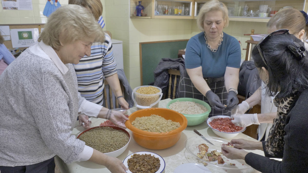 Την παραμονή των Εισοδίων της Θεοτόκου, στις 20 Νοεμβρίου κάθε έτους, σε έναν μικρό μεταβυζαντινό ναό, γνωστό και ως η «Παναγίτσα στ’ Αρχαία», μέσα στον αρχαιολογικό χώρο της Ελευσίνας, εκεί που κατά την αρχαιότητα τελούνταν τα Ελευσίνια μυστήρια, μετά την ακολουθία του εσπερινού, ευλογείται από τον ιερέα η ιερή τροφή της Δήμητρας και οι άλλες δύο τροφές που συγκροτούν την τριάδα της μεσογειακής δίαιτας. Οι πιστοί προσκομίζουν άρτους, μαζί με λίγο λάδι και κρασί. Παραδίδουν επίσης στον ιερέα χαρτιά, στα οποία αναγράφονται τα ονόματα των οικείων τους, προκειμένου να μνημονευθούν στη δέηση για υγεία και ευημερία. Ο ιερέας ευλογεί τις προσφορές των πιστών και δέεται «υπέρ ευφορίας των καρπών της γης». Μετά το πέρας της θρησκευτικής τελετής, οι άρτοι μοιράζονται σε όλους τους παρευρισκόμενους.