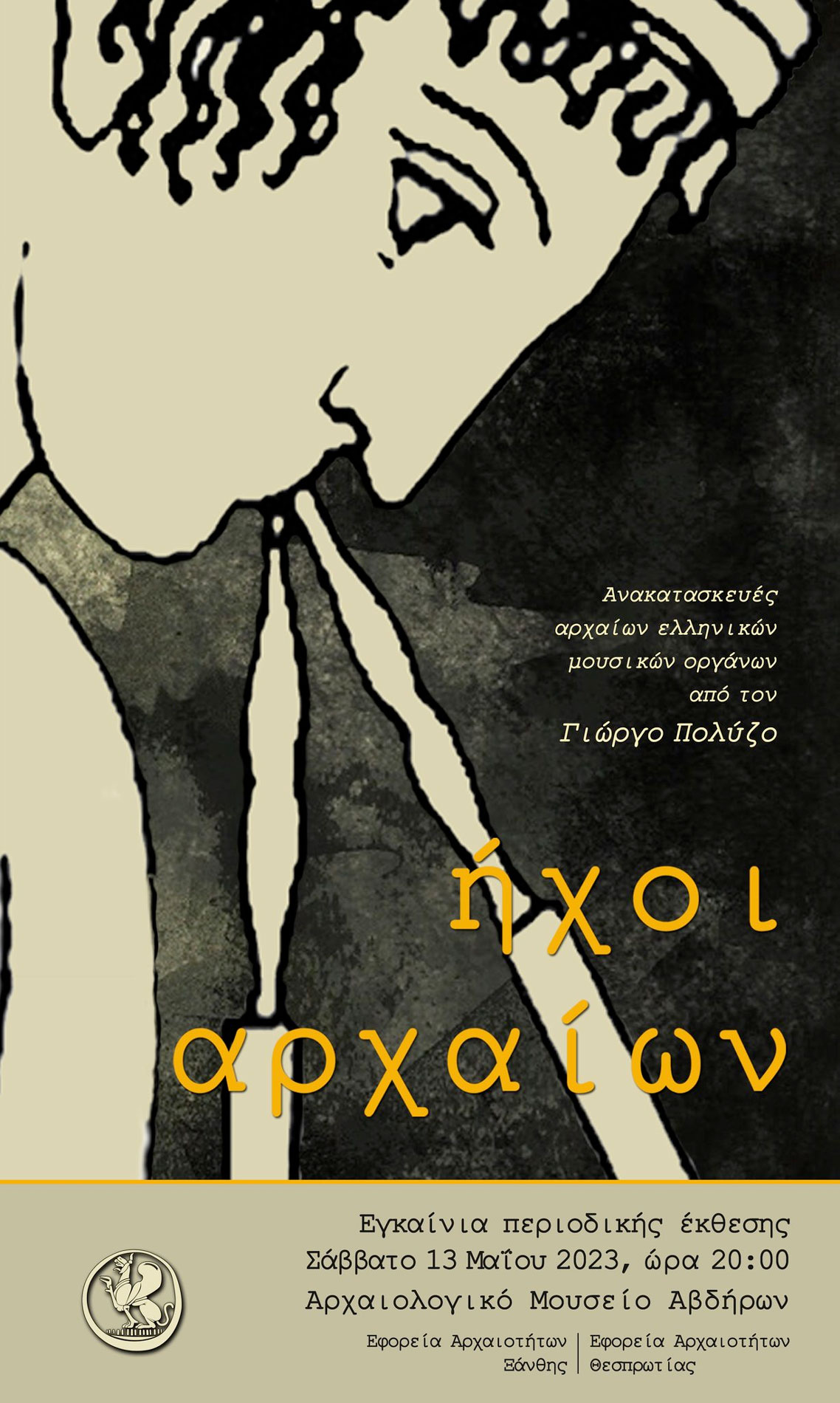 Από τις 13 Μαΐου έως τις 31 Δεκεμβρίου 2023, οι επισκέπτες του Αρχαιολογικού Μουσείου Αβδήρων θα έχουν την ευκαιρία να δουν από κοντά τη λύρα, τη βάρβιτο, την πανδουρίδα, τον αυλό και άλλα πιστά αντίγραφα μουσικών οργάνων στο πλαίσιο της περιοδικής έκθεσης «Ήχοι αρχαίων».