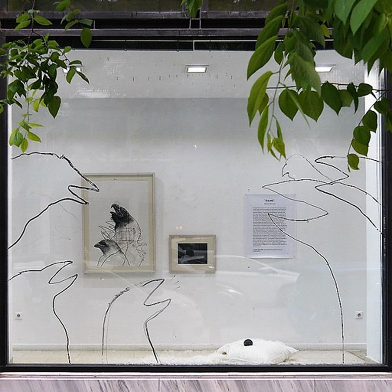 Όσο για το περιβάλλον στο οποίο θα «ζουν» κατά τη διάρκεια της έκθεσης τα πτηνά, το επιμελήθηκε ο Γιάννης Αργυριάδης, ο άνθρωπος που εμπνεύστηκε τις Βιτρίνες Τέχνης του ΟΤΕ και τρέχει το project από την πρώτη στιγμή. «Υπάρχουν εγκαταστάσεις με φωλιές, αβγά και σχέδια, στους τοίχους, στο πάτωμα, ακόμη και κρεμασμένα από το ταβάνι…», είπε ο καλλιτέχνης, ευχαριστώντας τον κ. Αργυριάδη.