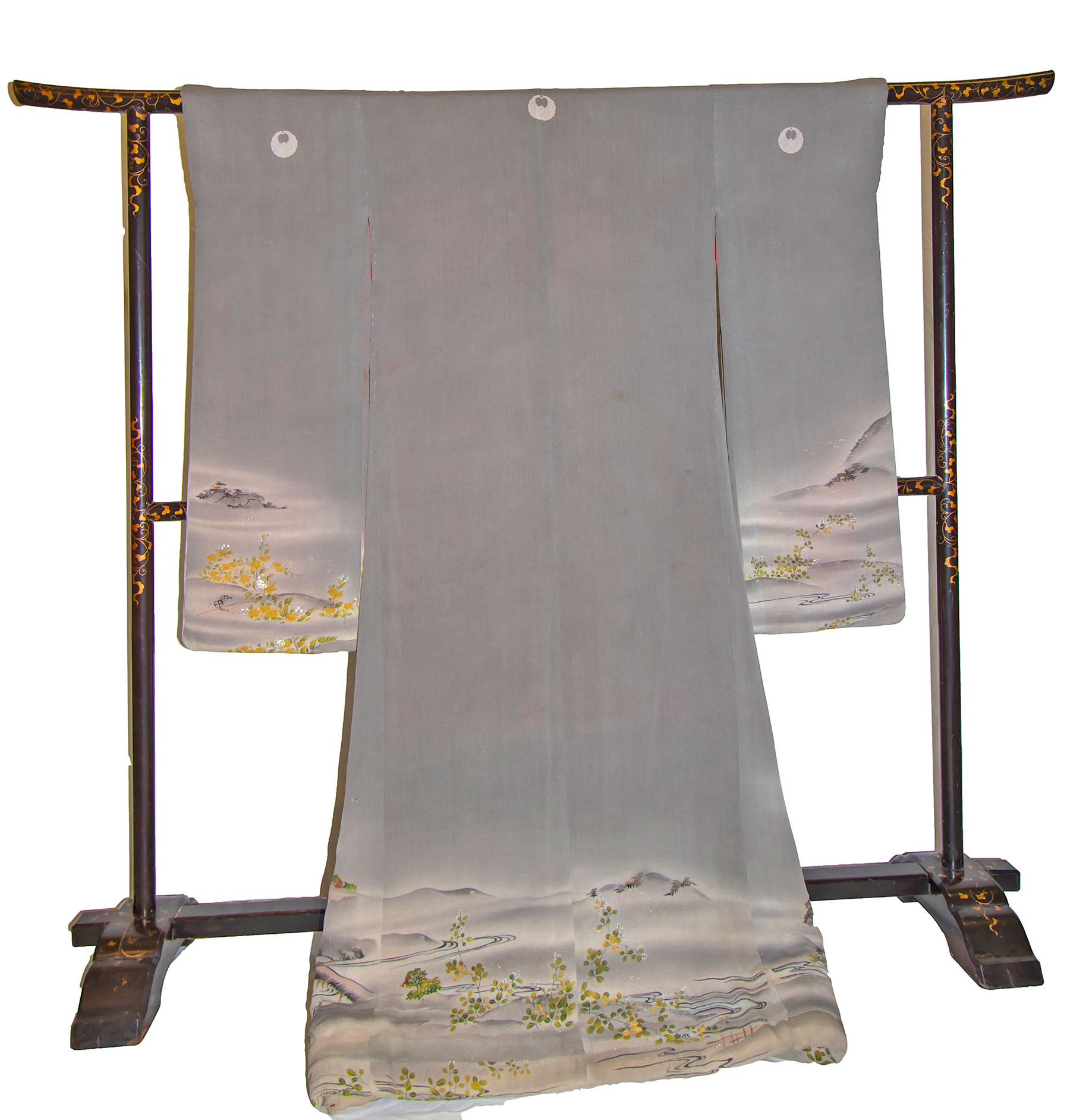Στη συνέχεια, ξεδιπλώνεται η τέχνη των πολύτιμων μεταξωτών υφασμάτων, καθώς η κλωστοϋφαντουργία υπήρξε μια από τις κορυφαίες μορφές έκφρασης του ιαπωνικού πολιτισμού, για να καταλήξει στο εμβληματικό κιμονό: κύριο ένδυμα για άνδρες και γυναίκες όλων των τάξεων της ιαπωνικής κοινωνίας, από τον 16ο αιώνα, με περίτεχνα σχέδια και ιδιαίτερους συμβολισμούς.