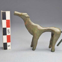 Επίσης, στα ανασκαφικά τετράγωνα ανατολικά των οικοδομημάτων ήρθε στο φως μεγάλη ποσότητα κεραμικής που χρονολογείται στον 8ο και τον 9ο αι. π.Χ., πιστοποιώντας τη λατρευτική χρήση του χώρου ήδη από το 850 π.Χ. Στα αναθήματα προς τη θεότητα στην οποία ήταν αφιερωμένος αυτός ο ιερός τόπος συγκαταλέγονται πήλινα και χάλκινα ειδώλια, από τα οποία ξεχωρίζει το χάλκινο ειδώλιο ζώου, πιθανώς σκύλου, πήλινοι τροχοί αμαξών, χάλκινες πόρπες και περόνες (εξαρτήματα στερέωσης των ενδυμάτων), αλλά και σιδερένια όπλα, ενώ ενδιαφέρον είχε η αποκάλυψη μίας χρυσής ψήφου (εξάρτημα περιδεραίου), εύρημα σπάνιο στα ιερά της Αιγιάλειας.