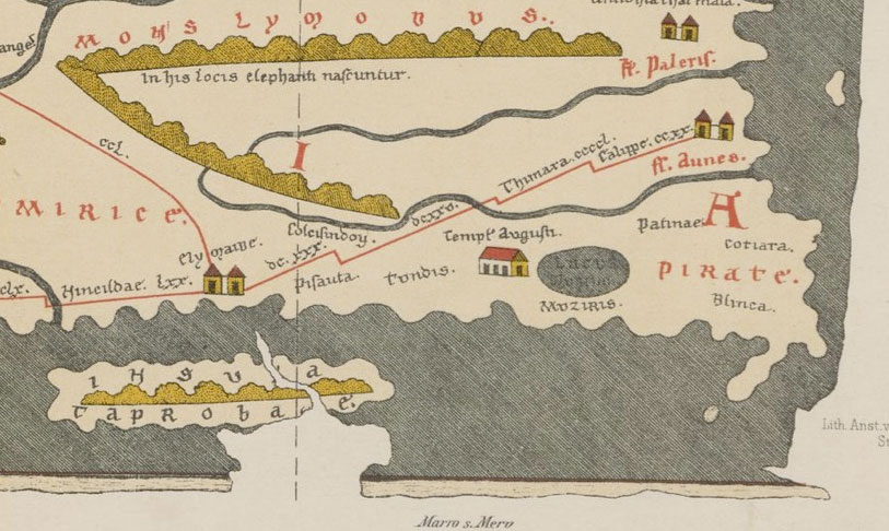 Αναφερόμενoς στις ιστορικές πηγές για το λιμάνι Μουζίρις, ο καθηγητής του ΕΚΠΑ επισήμανε ότι «ήταν ένα λιμάνι στη νοτιοδυτική Ινδία (σημερινό Πατανάμ) το οποίο βρισκόταν σχετικά κοντά στη Νέλκυντα (αρχαία ελληνικά Νέλκυδα). Τόπος και τοπωνύμιο ήταν ήδη γνωστά από ελληνικές και λατινικές λογοτεχνικές πηγές όπως από τον Περίπλου της Ερυθράς Θάλασσας, από τη Γεωγραφία του Κλαύδιου Πτολεμαίου και από τη Φυσική Ιστορία του Πλινίου. Η Μουζίρις εμφανίζεται και στη λεγόμενη Tabula Peutingeriana, ένα περγαμηνό αντίγραφο του 13ου αιώνα ενός χάρτη της Ρωμαϊκής περιόδου, το οποίο επίσης φυλάσσεται στη Βιέννη».