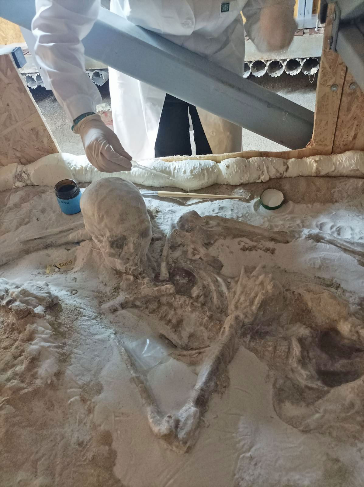«Στο σύνολο του σκελετικού υλικού των Δεσμωτών εκτελούνται διαρκώς επεμβάσεις πρόληψης και σωστικές επεμβάσεις συντήρησης με σκοπό τη διατήρηση και προστασία του ευρήματος και της ταφονομίας, της διάταξης δηλαδή των σκελετικών καταλοίπων. Διενεργείται καταγραφή της θερμοκρασίας και της σχετικής υγρασίας μέσω ηλεκτρονικού οργάνου καταγραφής και έλεγχος των δεδομένων, ενώ επεμβάσεις διαβροχής γίνονται στις περιόδους ξηρασίας. Λόγω της υποχώρησης του αμμώδους υποστρώματος καθώς στεγνώνει, ιδιαίτερη σημασία δίδεται στις εργασίες συγκράτησης των πρανών του σκάμματος, ενώ μέριμνα λαμβάνεται και για τη συγκράτηση και την υποστήριξη ετοιμόρροπων οστών στις περιπτώσεις που υποχωρεί το αμμώδες υπόστρωμα που τα συγκρατεί. Τέλος, εκτελούνται συνεχώς στερεωτικές επεμβάσεις και επεμβάσεις ενίσχυσης του οπλισμού προστασίας», συμπληρώνει η συνομιλήτρια του ΑΠΕ-ΜΠΕ.