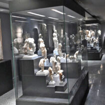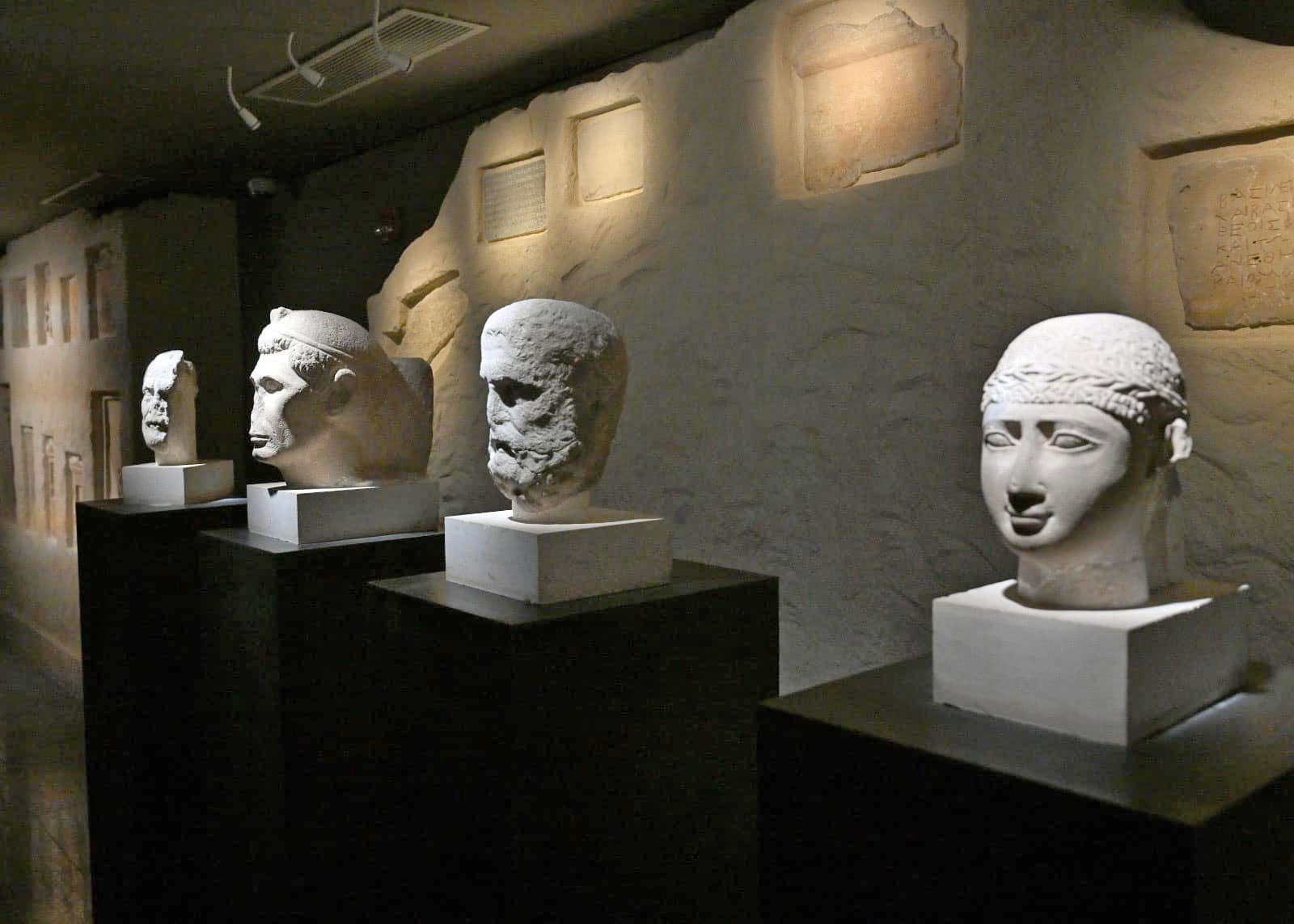 Στο ισόγειο υπάρχουν 27 αίθουσες με αρχαιότητες τοποθετημένες με χρονολογική σειρά, ξεκινώντας από την εποχή πριν από τον Μέγα Αλέξανδρο (5ος αι. π.Χ.) έως τη Βυζαντινή εποχή (6ος αι. μ.Χ.). Στο ισόγειο βρίσκονται επίσης τα εργαστήρια συντήρησης και οι αποθήκες του μουσείου.