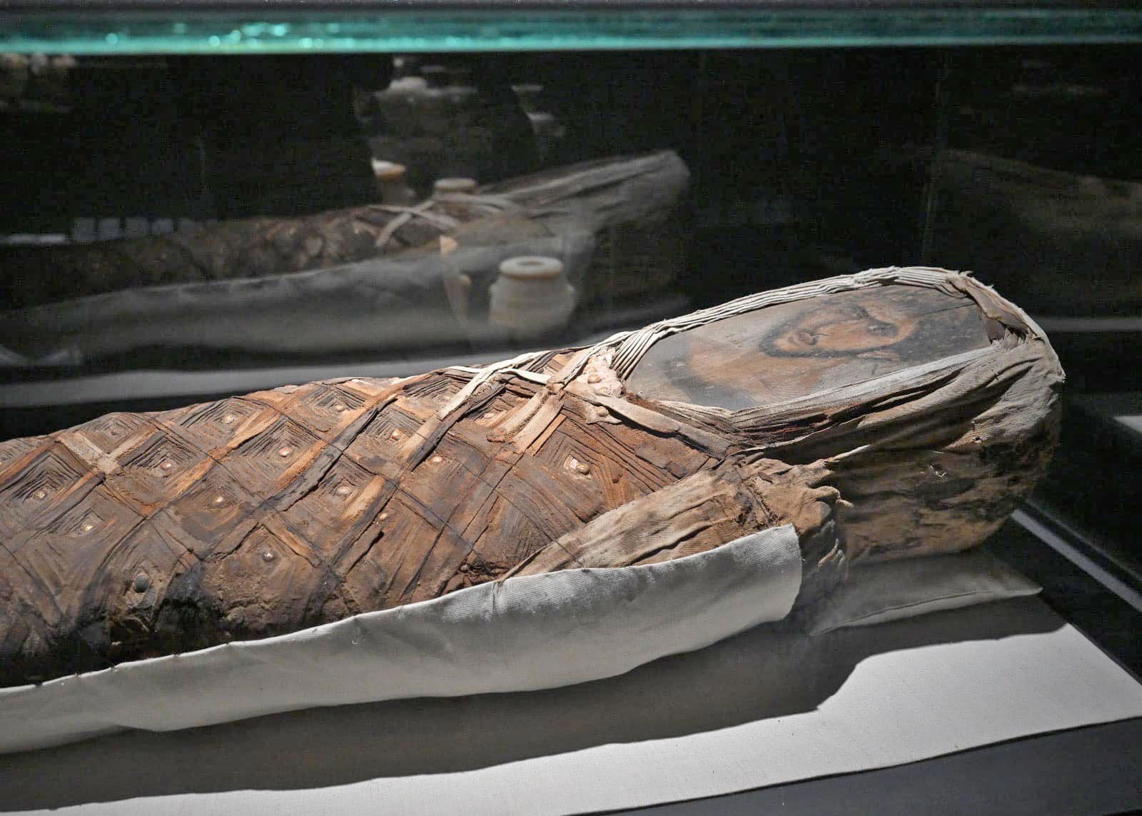 Η έκθεση παρουσιάζει επίσης τη δογματική εξέλιξη των ταφικών εθίμων στην Ελληνική και Ρωμαϊκή εποχή μέσα από μούμιες, φυλαχτά, κανωπικά αγγεία, επιτύμβιες στήλες, πορτρέτα Φαγιούμ και σαρκοφάγους, στις διάφορες εποχές που πέρασε η Αλεξάνδρεια ειδικότερα και η Αίγυπτος γενικότερα. Η βυζαντινή και η κοπτική τέχνη προβάλλονται επίσης μέσα από διακριτικά αρχιτεκτονικά κατάλοιπα (ζωφόρους, διακοσμήσεις οροφής, βάσεις κιόνων, κιονόκρανα, ταπισερί και νομίσματα).