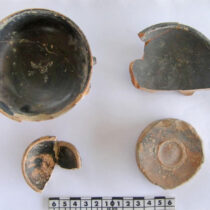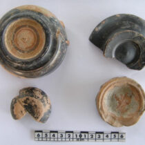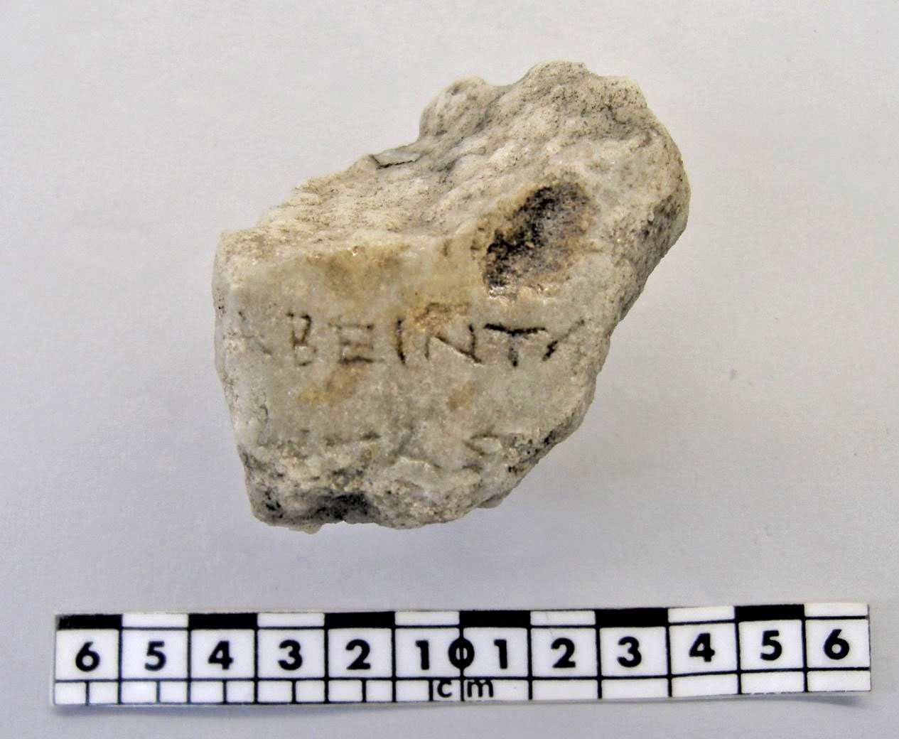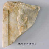 α) Θραύσμα στήλης με τμήμα επιγραφής (ψηφίσματος), σε 2-3 αποσπασματικούς στίχους, και