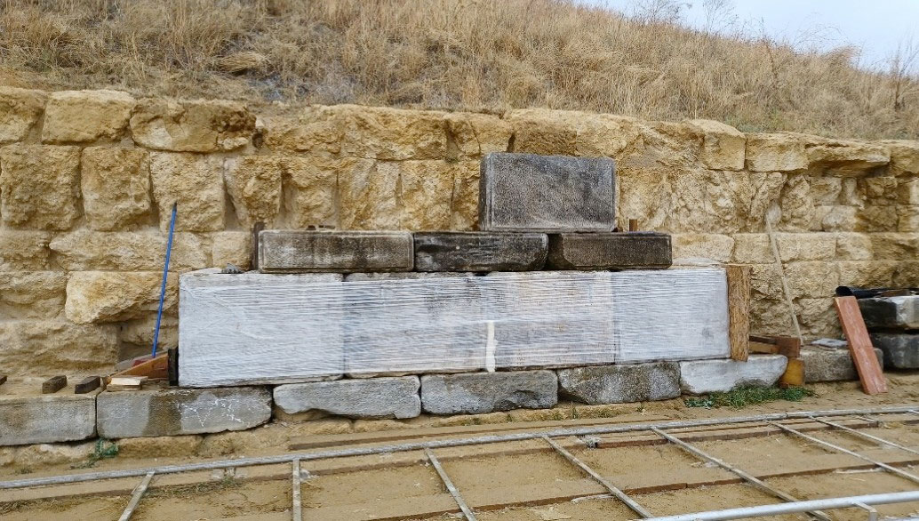 Στην πλειονότητά τους τα μαρμάρινα μέλη βρίσκονται σε καλή δομική κατάσταση, εκτός από δύο: Έναν ορθοστάτη και μια βάση με θραυσμένα τμήματα, στα οποία δεν απαιτήθηκε συμπλήρωση για την τοποθέτησή τους.