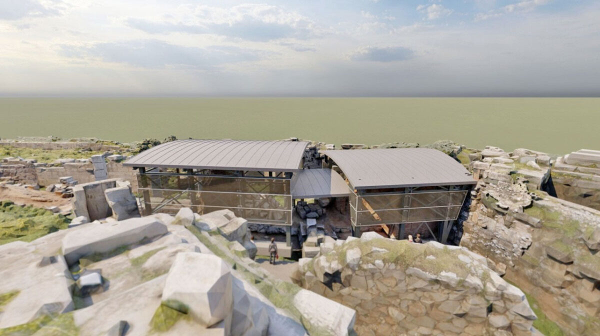 Στόχος της μελέτης είναι η προστασία του μνημείου από τη διαβρωτική επίδραση του ανέμου, της βροχής και των ακραίων θερμοκρασιών. Ο σχεδιασμός έχει ως γνώμονα την ομαλή ένταξη των στεγάστρων στο περιβάλλον του αρχαιολογικού χώρου, αλλά και την ανάδειξη της σπουδαιότητας του μνημείου. Τα προσδοκώμενα οφέλη από τη συνολική μόνιμη στέγαση του μνημείου είναι, επίσης, η διαμόρφωση ηπιότερων συνθηκών μικροκλίματος, φωτισμού και αερισμού, αλλά και ο περιορισμός του εύρους και της ταχύτητας μεταβολής των θερμοκρασιών. Προκειμένου να μη διαταραχθεί το άμεσο περιβάλλον, ο σχεδιασμός της έκτασης των στεγάστρων προστασίας περιορίζεται αυστηρά στα όρια του μνημείου με σκοπό αφενός την εναρμόνισή τους με τους άξονες της κάτοψης του υποκείμενου μνημείου, αφετέρου την ενίσχυση της έννοιας της συνέχειας των ευρημάτων, τα οποία αν και μπορεί να είναι διακοπτόμενα ή και σε απόσταση μεταξύ τους, αποτελούν κομμάτια του ίδιου συνόλου. Για την πλαϊνή κάλυψη του μνημείου προτείνεται η χρήση υαλοπινάκων σε σύστημα σημειακής στήριξης. Επιπλέον, λαμβάνεται υπόψη το ύψος του «Κιμώνειου τείχους», το οποίο συνορεύει προς τα νότια, για να μην επηρεαστεί αρνητικά από την επέμβαση.