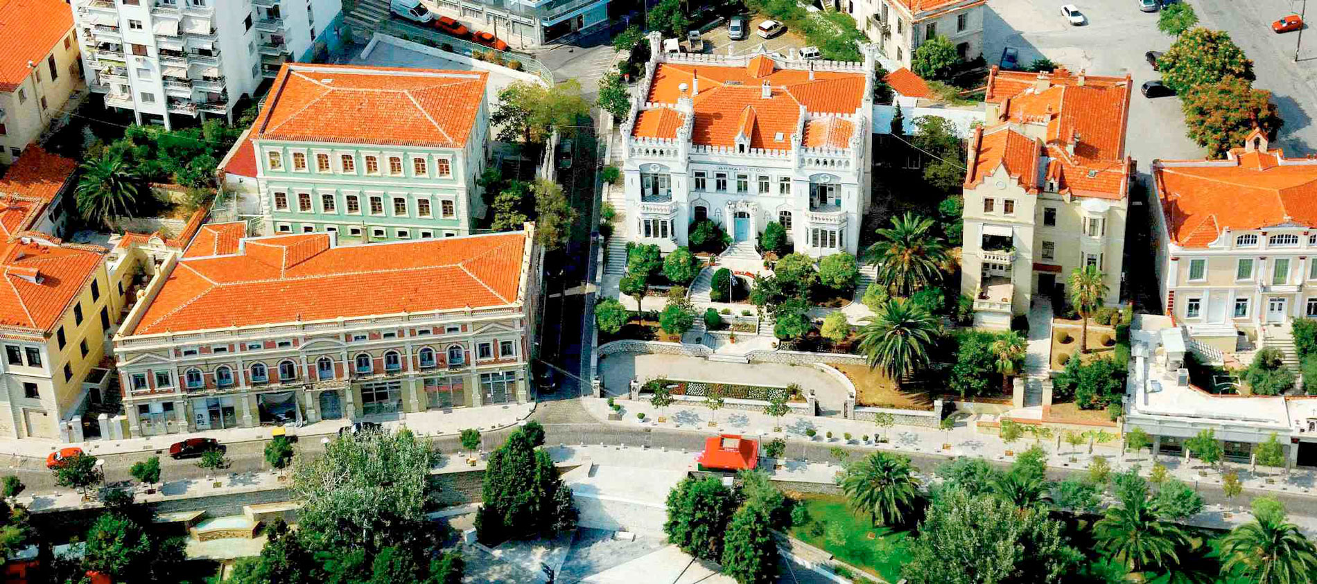 Κατά μήκος του, ο περιπατητής συναντά ορισμένα από τα πιο εμβληματικά κτίρια, αρχοντικά κτίσματα του περασμένου αιώνα, που ευτυχώς κατάφεραν να διασωθούν και να αποτελούν σήμερα σήμα κατατεθέν της «γαλάζιας πολιτείας».
