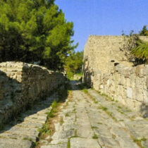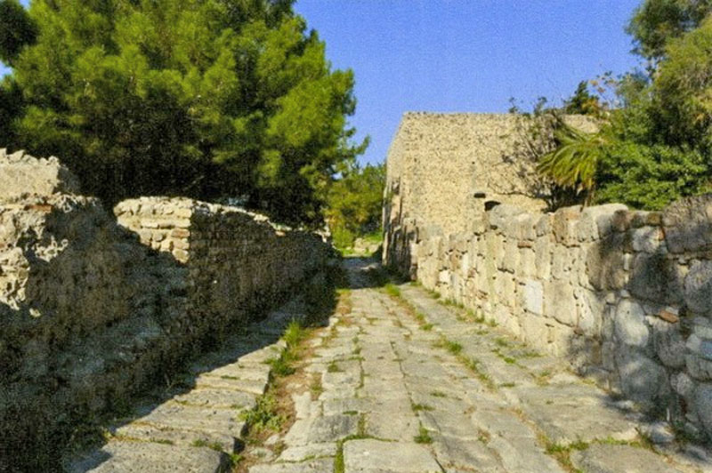 1. Στην αποκατάσταση του αρχαίου οδικού δικτύου καθώς είναι καίριας σημασίας για τη γενικότερη εικόνα και λειτουργία του χώρου.