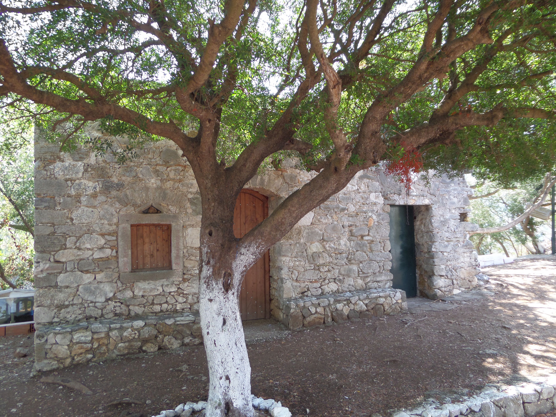 Τα απομεινάρια από τα κελιά και τις αποθήκες του μοναστηριού που βρίσκονται πολύ κοντά στον ναΐσκο έχουν αναπαλαιωθεί τα τελευταία χρόνια. Στα κελιά συναντάμε ένα μικρό μονόλοβο κωδωνοστάσιο, ενώ η πολύ μικρή ημικυκλική κόγχη του ναού είναι αρκετά χωμένη στο έδαφος, δείγμα παλαιότητας.