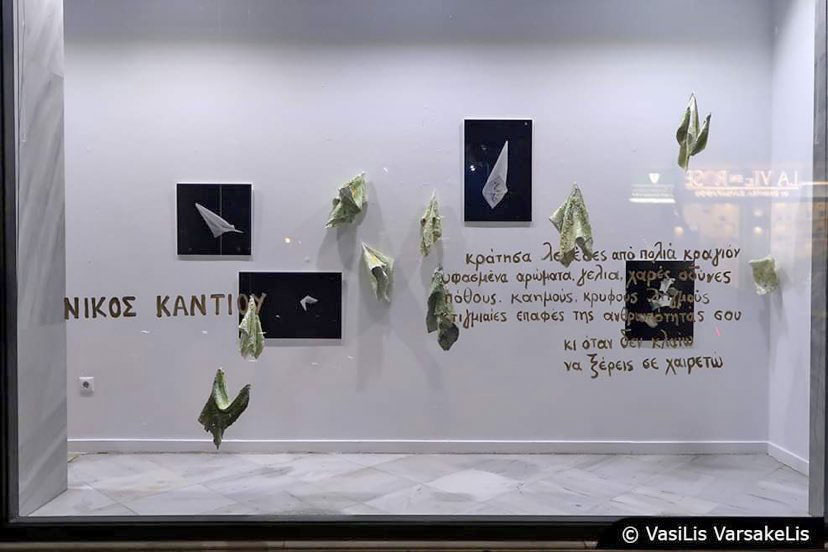«Για τον Νίκο Κουκή το μαντήλι αποτυπώνει τη χαρά της ζωής, τον αποχαιρετισμό, τη σύνδεση με τις ρίζες, τις μνήμες, τις χαρές, τα νιάτα, τη νοσταλγία» δηλώνει στο ΑΠΕ-ΜΠΕ η συγγραφέας Νίκη Γκίζη, που έγραψε το εισαγωγικό κείμενο της έκθεσης. «Ο Νίκος Καντιού παίρνει μέρος με μαντήλια τα οποία έχει πλάσει με γύψο και τα έχει φτιάξει σαν να είναι αληθινά» προσθέτει.