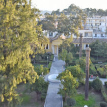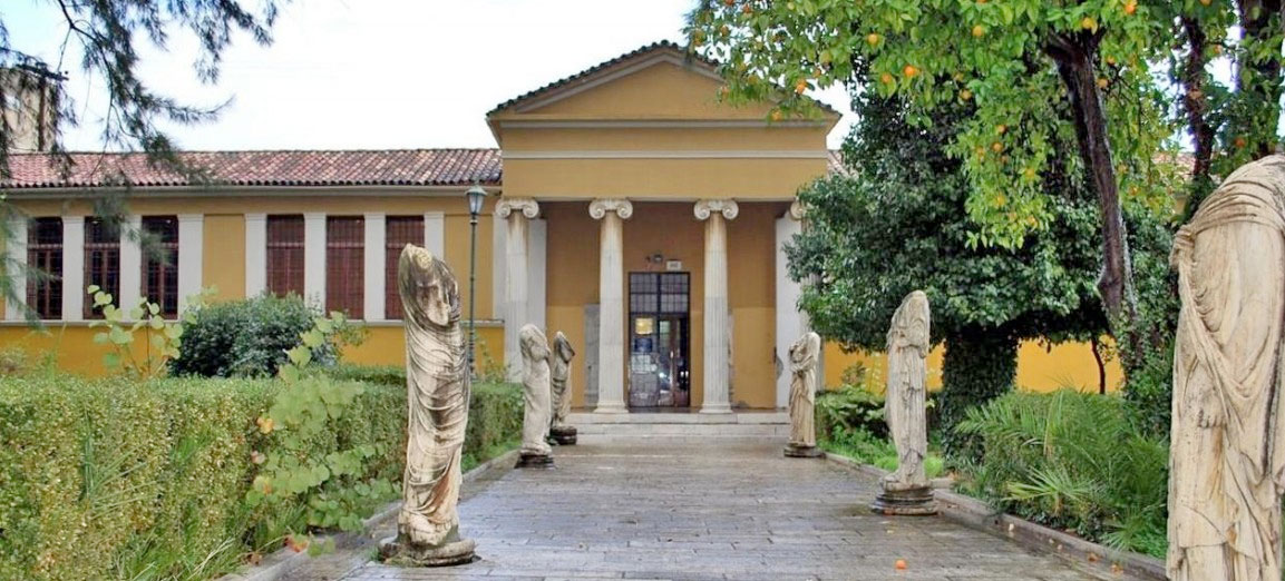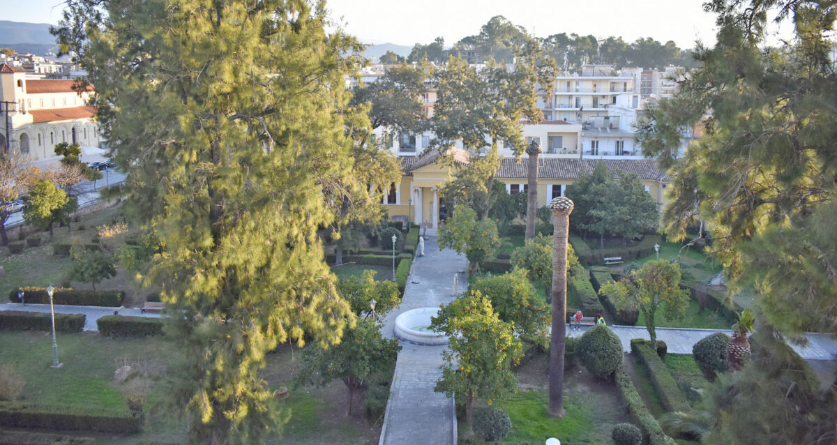 Ο Κήπος είναι αναπόσπαστο μέρος της αρχιτεκτονικής κληρονομιάς του Μουσείου. Σχεδιάστηκε, επίσης, από τον Γ. Κατσαρό και η διαμόρφωσή του ξεκίνησε το 1920, με το σχέδιο των δύο αξόνων να παραμένει αναλλοίωτο μέσα στις δεκαετίες. Χωρικά στοιχεία όπως το μαρμάρινο σιντριβάνι και τα παγκάκια προστέθηκαν σε ύστερο χρόνο. Το 1960, ο περιβάλλων χώρος διακοσμήθηκε με αγάλματα και ανάγλυφα της Ρωμαϊκής περιόδου. Βάσει της μελέτης αποκατάστασης, ο Κήπος αρθρώνεται γύρω από δύο βασικούς άξονες, διατηρώντας το εμβληματικό σιντριβάνι στο κέντρο. Η επέμβαση στο χώρο οργανώνεται γύρω από μια στρατηγική υποστήριξης και αποκατάστασης. Οι γραμμικές φυτεύσεις με θάμνους κατά μήκος των δύο αξόνων αποκαθίστανται, καθώς αποτελούν χωρικό σημείο αναφοράς. Οι τέσσερις εμβληματικοί Φοίνικες του Κήπου, επίσης, αποκαθίστανται.