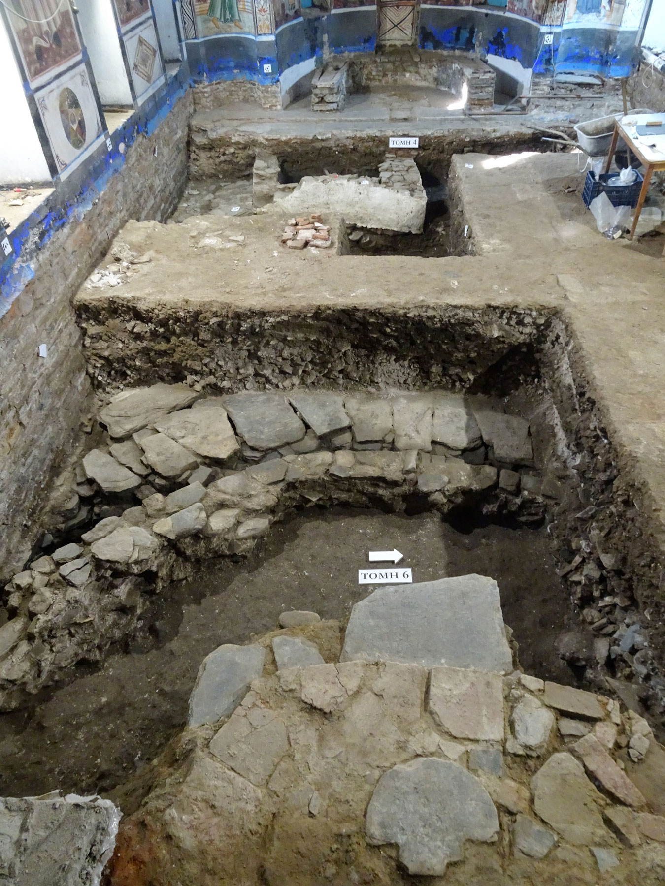 Οι εργασίες έφεραν στο φως μεγάλο μέρος της αρχικής βυζαντινής τράπεζας του 10ου αιώνα, η οποία προκύπτει ότι ήταν επίσης σταυρόσχημη, όπως και η σημερινή. Εντοπίστηκε επίσης η μεγέθυνση της τράπεζας του 12ου αιώνα προς τα δυτικά και τα κατά καιρούς επάλληλα δάπεδα και βάσεις των τραπεζιών, στοιχεία που μαρτυρούν τις ανακαινιστικές εργασίες που γίνονταν για ένα διάστημα 700 περίπου χρόνων. Τις επάλληλες φάσεις τεκμηριώνουν ένας ικανός αριθμός οστράκων από εφυαλωμένα αγγεία, τα οποία καλύπτουν ένα ευρύ χρονικό διάστημα από τα τέλη του 10ου αιώνα έως και τα όψιμα μεταβυζαντινά χρόνια.