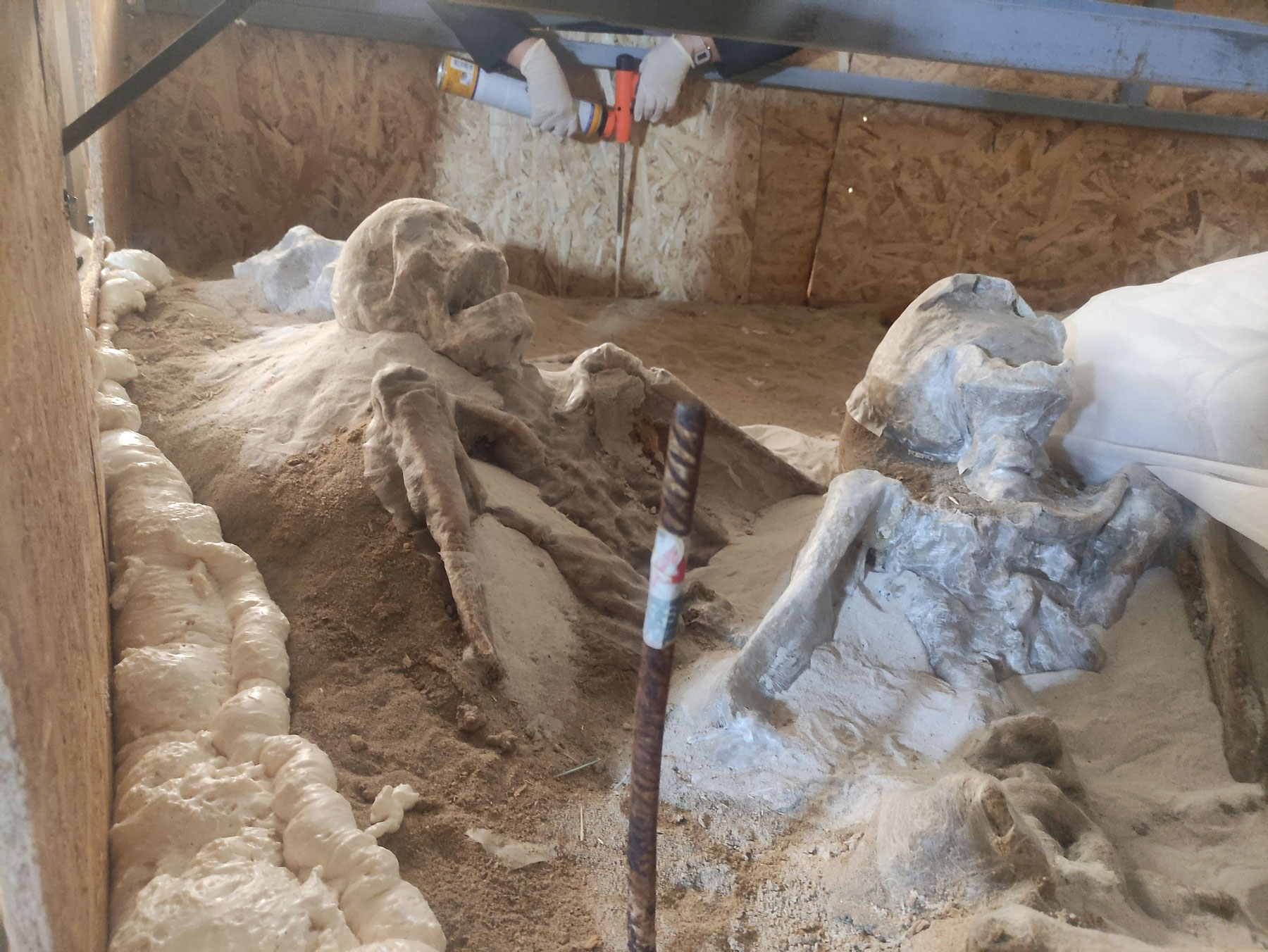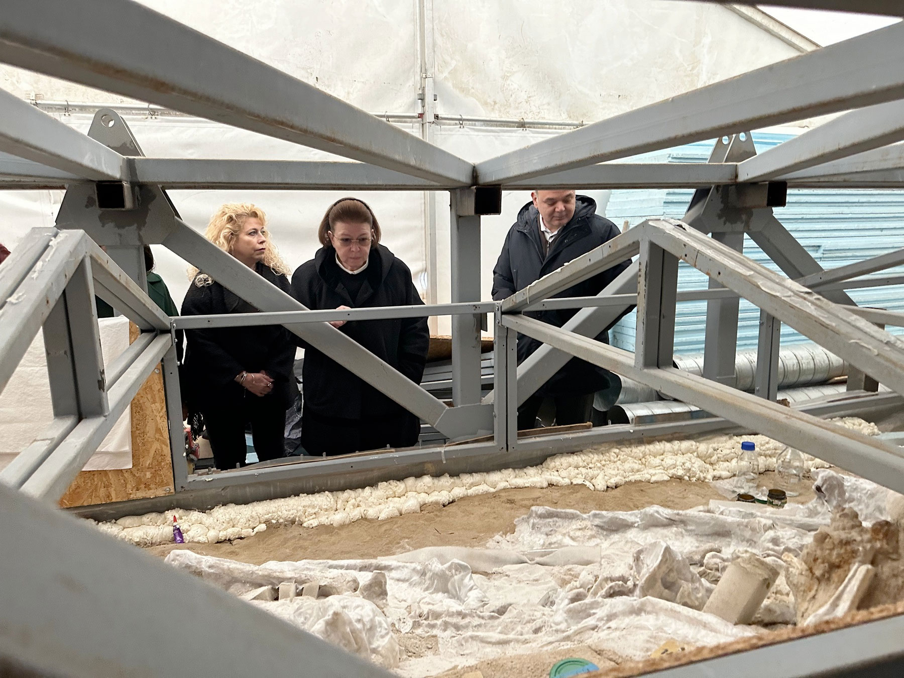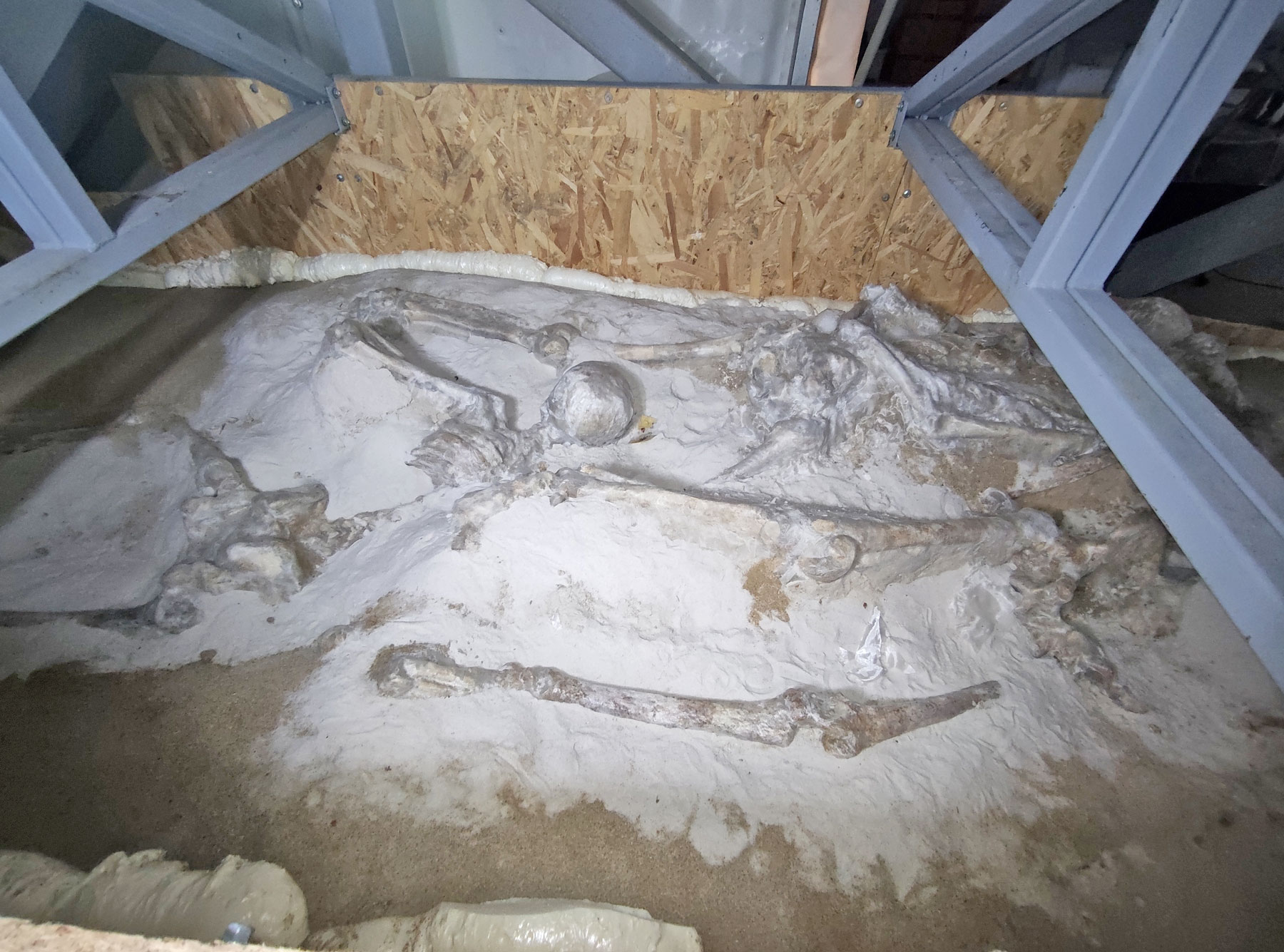 Παράλληλα, ολοκληρώνεται ο διαγωνισμός για την επιλογή του αναδόχου για την κατασκευή του μουσειακού κελύφους προστασίας και ανάδειξης του ευρήματος, στην ίδια θέση στην οποία αποκαλύφθηκαν. Το έργο, προϋπολογισμού περίπου 6.500.000 ευρώ, χρηματοδοτείται από το Ταμείο Ανάκαμψης. Το κέλυφος αποτελείται από υπόγειο χώρο περίπου 450 τ.μ. για την προστασία του σκελετικού υλικού, και ενός επίγειου, έκτασης περίπου 425 τ.μ., που θα φιλοξενεί το εποπτικό υλικό, τις υποδομές λειτουργίας και τους χώρους εξυπηρέτησης των επισκεπτών. Οι αρχές του σχεδιασμού της κτηριακής υποδομής είναι αφενός μεν η αρμονική ένταξη του επίγειου τμήματος στη διαμορφωμένη Εσπλανάδα, και αφετέρου η διαμόρφωση ενός λιτού υπογείου κελύφους για την επανατοποθέτηση των «Δεσμωτών», το οποίο θα επιτρέπει τη βέλτιστη θέαση και κατανόησή τους από τους επισκέπτες. Το σύνολο της μουσειακής υποδομής έχει σχεδιαστεί ώστε να είναι καθολικά προσβάσιμο.