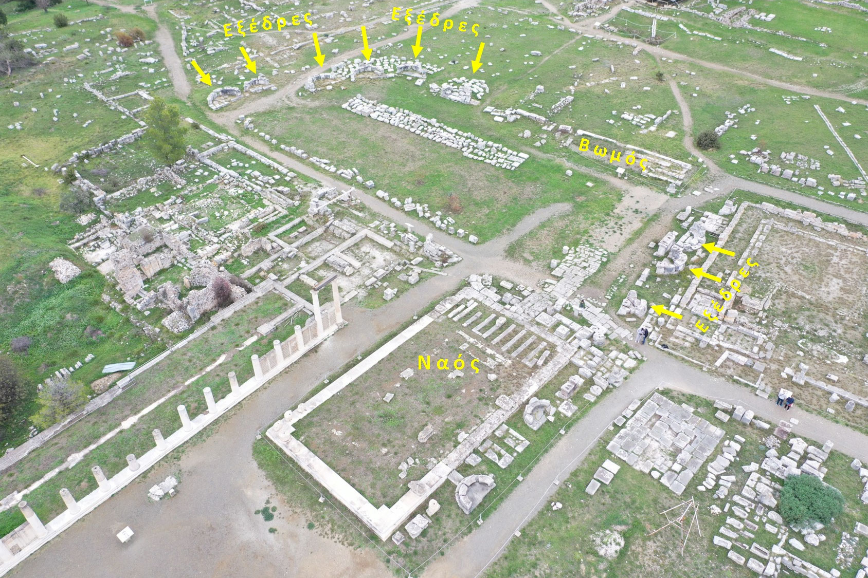 Στο μεγάλο κτήριο του 2ου αι. μ.Χ. («Κτήριο Κ») στα δυτικά της ιεράς οδού, διακριβώθηκαν πολλές οικοδομικές φάσεις, μέχρι τον ύστερο 4ο αι. μ.Χ. Η ύπαρξη μίας ιδιόμορφης «κρύπτης» συνάδει με τη χρήση του «Κτηρίου Κ» για μία μυστικιστική λατρεία, ιδίως κατά τους ύστερους ρωμαϊκούς χρόνους.