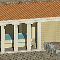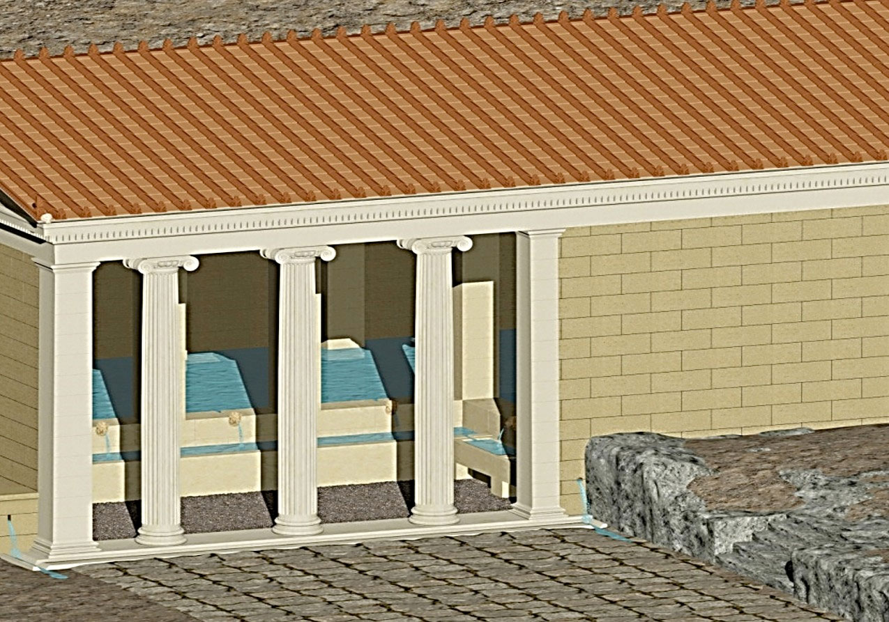 Κατά τη φάση των ρωμαϊκών χρόνων η πρόσβαση στο νερό της δεξαμενής ενσωματώθηκε στη στοά η οποία χτίστηκε στη δυτική πλευρά του ιερού, μπροστά από τον παλαιό χώρο υδροληψίας και τον περίβολο. Η στοά είχε τρίβαθμη κρηπίδα και επιχρισμένους, με κονίαμα, κίονες. Υπάρχουν ενδείξεις ότι μπορούσε να εξυπηρετεί τη διαδικασία της εγκοίμησης.