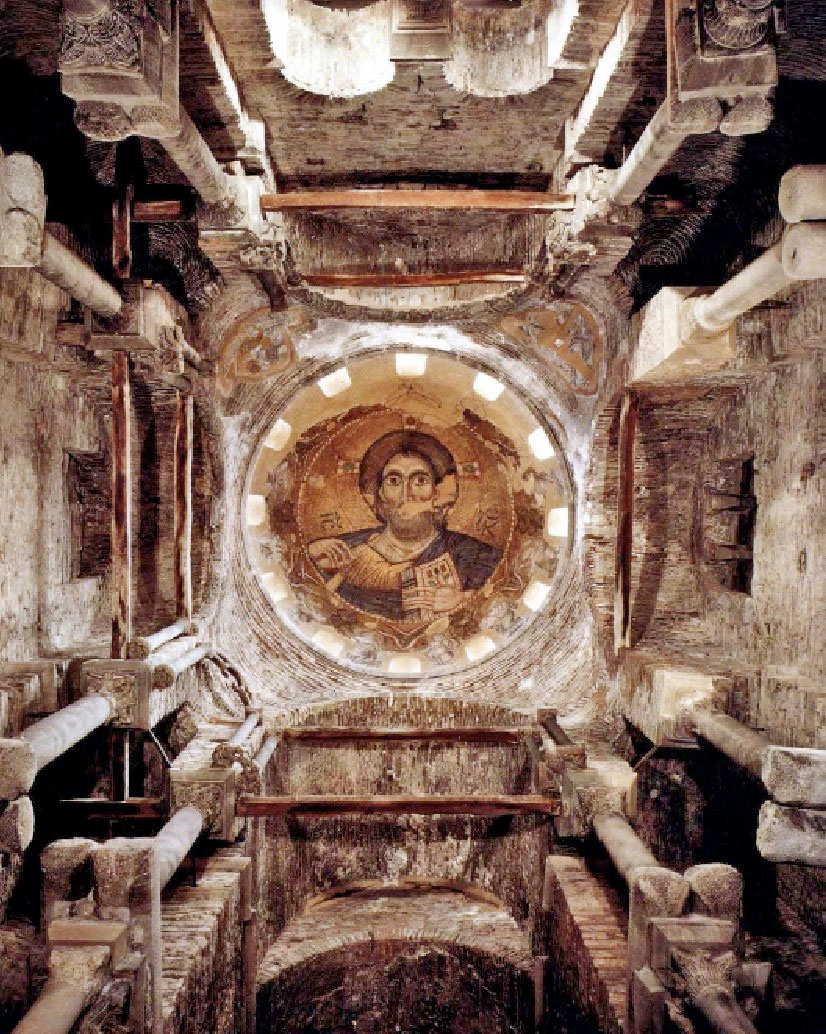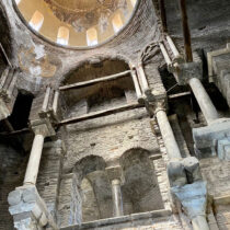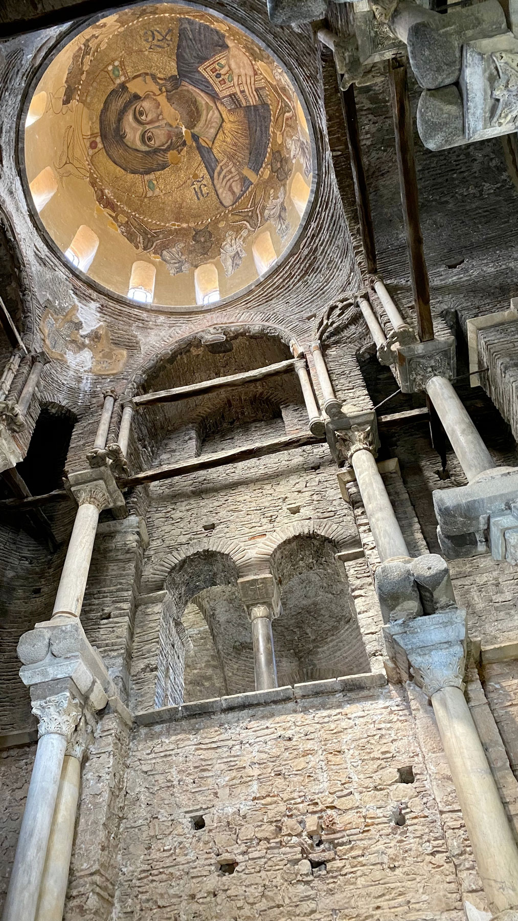 Η αρχιτεκτονική μελέτη αφορά στη βελτίωση του μνημείου όσον αφορά στην αρχική φέρουσα ικανότητά του. Συνοπτικά, στο ισόγειο, προβλέπεται να καθαιρεθούν τα επιχρίσματα που παραμένουν στο εσωτερικό του περιστώου. Το δάπεδο αποκαθίσταται στην ίδια μορφή, μετά τις απαιτούμενες στατικές παρεμβάσεις. Καθαιρείται η μεταλλική σκάλα πρόσβασης στον όροφο και κατασκευάζεται νέα στην ίδια θέση. Στον κυρίως Ναό, στις εξωτερικές επιφάνειες, προβλέπεται σημειακά η αποκατάσταση των φθαρμένων και ευτελών αρμολογημάτων, ώστε να μην παραμορφώνονται τα δομικά στοιχεία του μνημείου. Εσωτερικά προβλέπονται τοπικές ενισχύσεις κιονόκρανων και κιόνων που έχουν αστοχήσει. Από τις στέγες καθαιρούνται οι επικαλύψεις με κεραμίδια των πέντε τρούλων και των κεραιών της σταυρικής κάλυψης, όπως και του βάθρου του τυμπάνου του κεντρικού τρούλου.