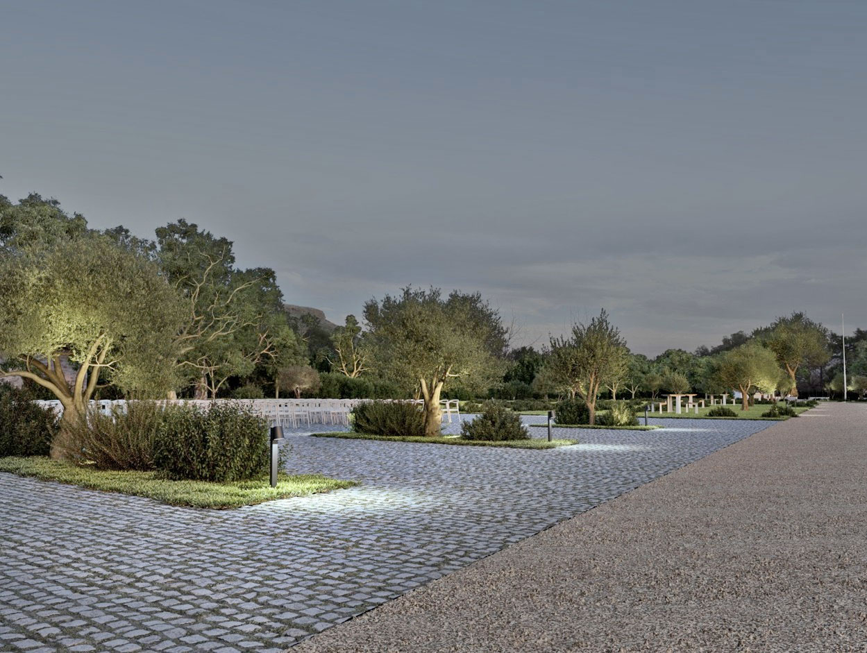 H μελέτη φωτισμού έχει σκοπό την ασφαλή κίνηση των επισκεπτών, την ανάδειξη των εξωτερικών διαδρομών, της κεντρικής πλατείας και της φύτευσης. Προβλέπεται γενικός φωτισμός διαδρομών και οδού προς το μουσείο του αρχαιολογικού χώρου και φωτισμός σε διαμορφώσεις πρασίνου και κήπου. Η μελέτη συστημάτων ασφαλείας περιλαμβάνει προληπτικά και κατασταλτικά μέτρα για την προστασία από πυρκαγιά με τοποθέτηση δικτύου καμερών, οι οποίες θα λειτουργούν μέσω ασύρματου τηλεπικοινωνιακού συστήματος, ώστε να είναι δυνατός ο έλεγχος και η λειτουργία τους σε πραγματικό χρόνο από οπουδήποτε και από εξουσιοδοτημένο χρήστη μέσω κωδικού ασφαλείας. Προβλέπεται δυνατότητα ηχητικής ενημέρωσης και παροχής οδηγιών προς τους επισκέπτες, αλλά και η τοποθέτηση ενημερωτικών πινακίδων για την καθοδήγηση των επισκεπτών.