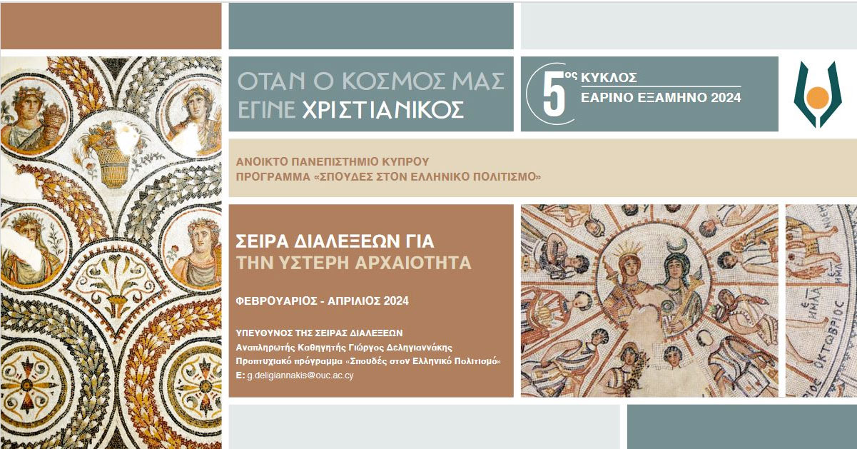 Διάλεξη με τίτλο «Νέα δεδομένα για το χριστιανικό ημερολόγιο της Σικυώνος IG IV2 1825» θα δώσει την Πέμπτη 14 Μαρτίου 2024, στις 19:00, ο Κωνσταντίνος Μπίλιας, ερευνητής στις Inscriptiones Graecae της Ακαδημίας Επιστημών και Ανθρωπιστικών Επιστημών Βερολίνου-Βρανδεμβούργου. Η διάλεξη πραγματοποιείται στο πλαίσιο του 5ου κύκλου της σειράς διαλέξεων για την Ύστερη Αρχαιότητα με γενικό τίτλο «Όταν ο κόσμος μας έγινε Χριστιανικός», που διοργανώνει το Προπτυχιακό πρόγραμμα «Σπουδές στον Ελληνικό Πολιτισμό» του Ανοικτού Πανεπιστημίου Κύπρου (ΑΠΚΥ) με συντονιστή τον Αναπληρωτή Καθηγητή Γιώργο Δεληγιαννάκη.