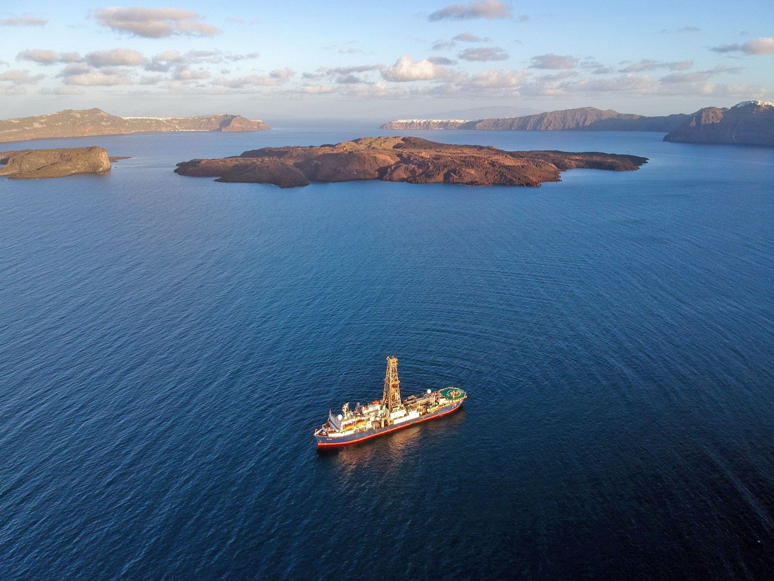Οι επιστήμονες που συμμετείχαν στην ωκεανογραφική ερευνητική αποστολή 398 στη Σαντορίνη, στο πλαίσιο του προγράμματος «International Ocean Discovery Program», με επικεφαλής τον Γιόνας Πράιν από το Πανεπιστήμιο του Αμβούργου και με τη συμμετοχή της αναπληρώτριας καθηγήτριας του Τμήματος Γεωλογίας και Γεωπεριβάλλοντος του ΕΚΠΑ, Εύης Νομικού, πραγματοποίησαν για πρώτη φορά υποθαλάσσιες γεωτρήσεις σε βάθος μέχρι και 160 μέτρων μέσα στην καλδέρα της Σαντορίνης και ανακάλυψαν υποβρύχιες αποθέσεις ελαφρόπετρας που τοποθετούνται χρονικά το 726 μ.Χ. και συνάδουν με τις ιστορικές καταγραφές για μια υποβρύχια έκρηξη που συνέβη εκείνη την εποχή.