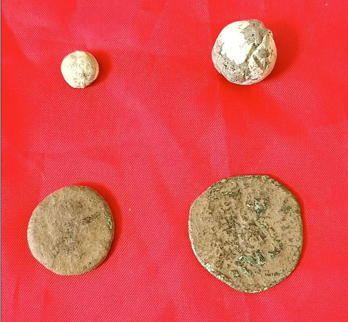 Έπειτα από έρευνες που ακολούθησαν βρέθηκαν τόσο στην κατοχή του όσο και στο σπίτι του δύο μολύβδινα αντικείμενα και δύο αρχαία ρωμαϊκά νομίσματα, τα οποία εξετάστηκαν από αρχαιολόγο της Εφορείας Αρχαιοτήτων Σερρών και διαπιστώθηκε ότι εμπίπτουν στις διατάξεις του νόμου για την προστασία των αρχαιοτήτων και εν γένει της πολιτιστικής κληρονομιάς.