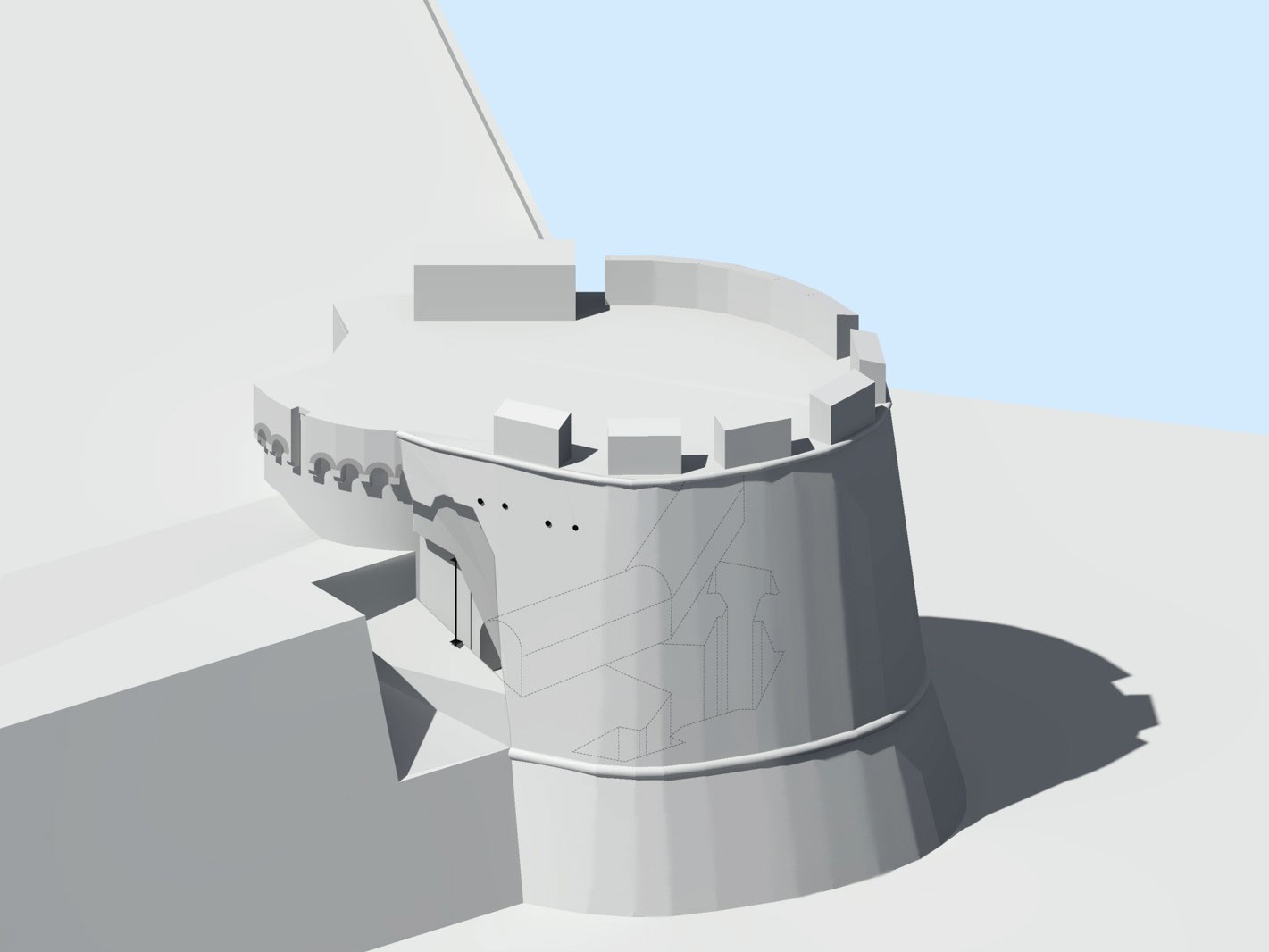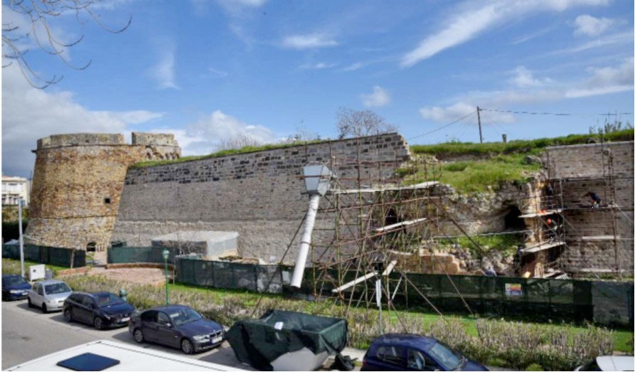 Προχωρούν συστηματικά οι εργασίες αποκατάστασης και ανάδειξης των χερσαίων τειχών του μεσαιωνικού Κάστρου της Χίου, του δεσπόζοντος μνημείου στα βόρεια του λιμανιού του νησιού και της Χώρας. Η ίδρυσή του ανάγεται στα 1328. Διαθέτει ισχυρούς προμαχώνες από τους οποίους σήμερα διατηρούνται οι οκτώ. Στους πύργους τριών από αυτούς, υπάρχουν εντοιχισμένες πλάκες με το έμβλημα των Ιουστινιάνι (ένα κάστρο με τρεις πύργους και εστεμμένος αετός) μνημονεύοντας το έτος κατασκευής ή επισκευής του οχυρωματικού έργου, στους χρόνους της Γενουατοκρατίας. Το τείχος αυτό, που κατά πολλούς ταυτίζεται με το προτείχισμα του μεσαιωνικού κάστρου (14ος-15ος αιώνα), ανοικοδομήθηκε, καθ’ ύψος, με την προσθήκη ενός κεκλιμένου τείχους, διαμορφώνοντας, κατ’ αυτόν τον τρόπο, μία σχεδόν ενιαία επικλινή επιφάνεια, η οποία εξυπηρετούσε τόσο στη στατικότητα του οικοδομήματος, όσο και στην αμυντική του ικανότητα.