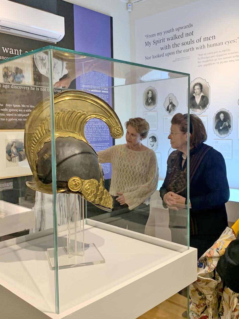 «Το πέρασμα του Βύρωνα από την Ελλάδα και το τέλος του εδώ», συνέχισε η Λίνα Μενδώνη, «τείνουν, πολύ φυσιολογικά, να επισκιάσουν ένα άλλο σημαντικότατο κομμάτι της αγάπης του για την Ελλάδα και της διαχρονικής κληρονομιάς του στους Έλληνες. Την εξαρχής εκδηλωθείσα αντίδρασή του στη βίαιη απόσπαση και αρπαγή των Γλυπτών του Παρθενώνα, από τον Έλγιν. Οταν ακόμη το θέμα ήταν ελάχιστα γνωστό και λίγες ήταν οι φωνές ενάντια στη λεηλασία της Ακρόπολης, ο Μπάιρον συνθέτει το ποίημα Η κατάρα της Αθηνάς, στο οποίο η Παλλάδα εμφανίζεται στον ίδιο, στην άνοδό του στην Ακρόπολη, για να καταγγείλει τον Έλγιν και την αποτρόπαιη πράξη του λέγοντάς του: Απ’ του Τούρκου τη μανία γλίτωσα και του Βανδάλου / μα η χώρα σου έναν κλέφτη μου ‘χει στείλει πιο μεγάλο. / Κοίτα, άδειος ο ναός μου, κατοικία ρημαγμένη / και στοχάσου τι μιζέρια είναι γύρω απλωμένη. Θα μπορούσε κανείς άλλος», υπογράμμισε η Υπουργός, «να συνηγορήσει με καλύτερο τρόπο υπέρ της επανένωσης των Γλυπτών του Παρθενώνα, κάποιος άλλος, όταν αυτοί οι στίχοι, διακόσια και περισσότερα χρόνια τώρα, παραμένουν ισχυροί, ζωντανοί, επίκαιροι;».