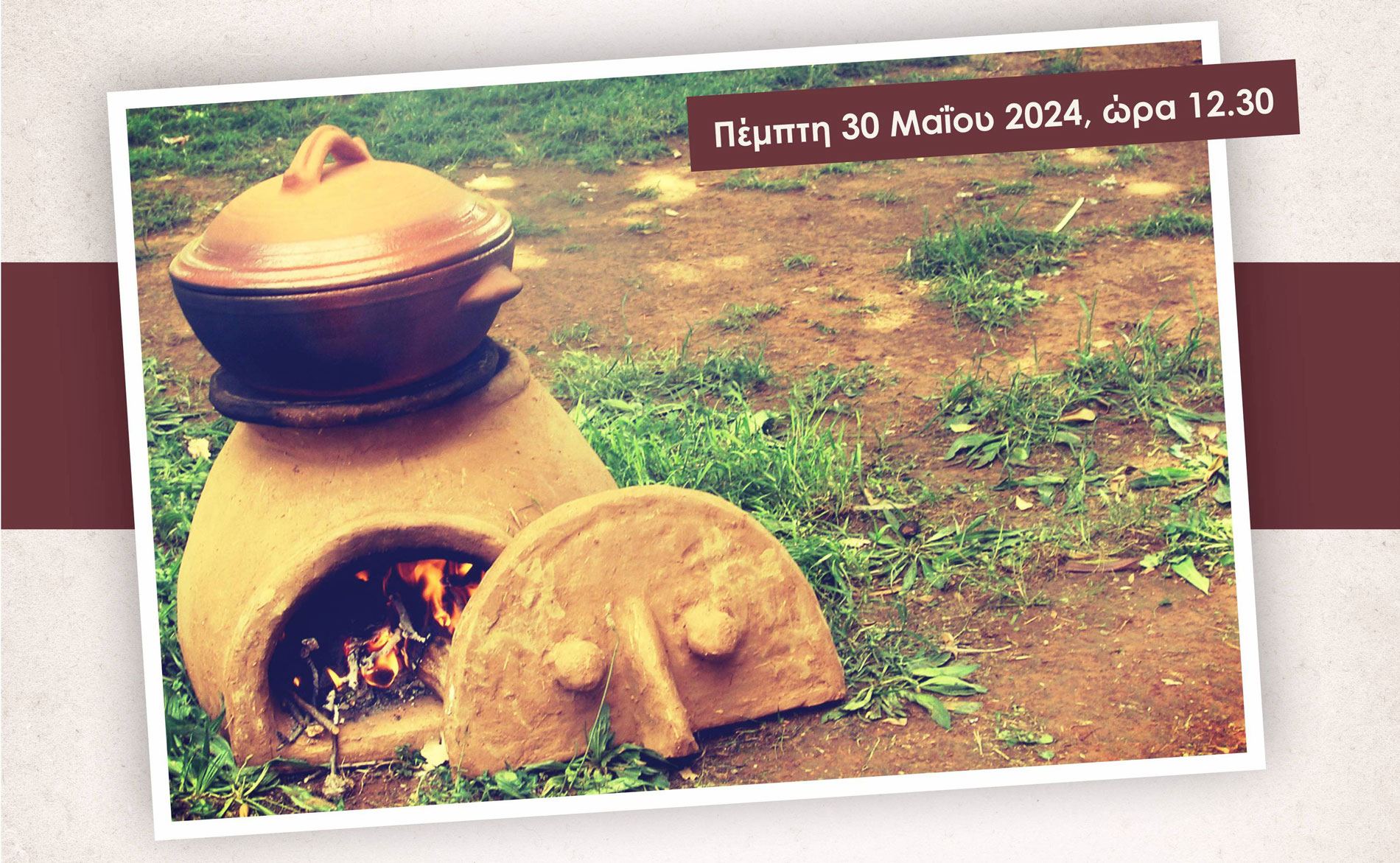 Στις 12.30 το μεσημέρι της Πέμπτης, σε ένα φουρνάκι φτιαγμένο από πηλό και άχυρο –ακριβές αντίγραφο μαγειρικής κατασκευής της εποχής του Χαλκού, που έφερε στο φως η ανασκαφή στον Προϊστορικό Οικισμό του Αρχοντικού Γιαννιτσών–, χρησιμοποιώντας για προσάναμμα κλαδιά από ρίκια και βελανιδιά, η κα Βαλαμώτη θα αρχίσει να προετοιμάζει το γεύμα.