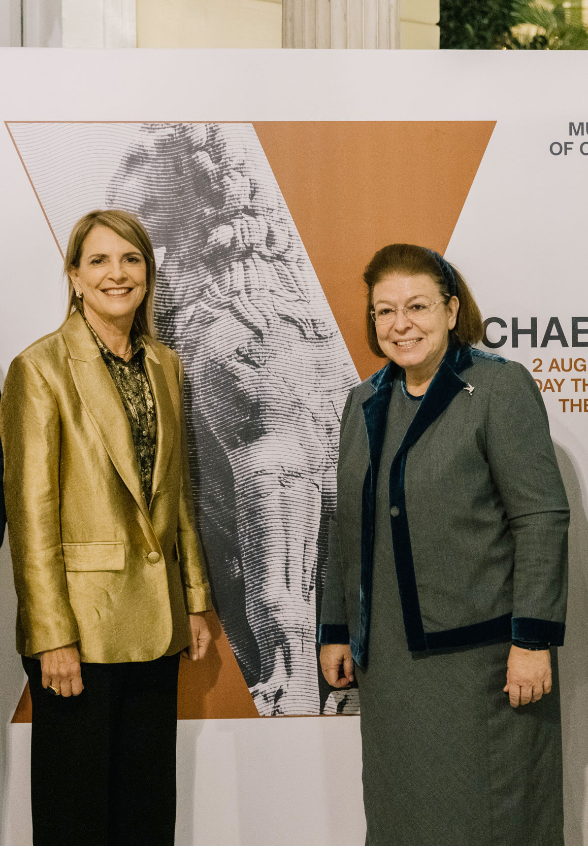 H Πρόεδρος και Διευθύνουσα Σύμβουλος του Μουσείου Κυκλαδικής Τέχνης Κασσάνδρα Μαρινοπούλου και η Υπουργός Πολιτισμού Λίνα Μενδώνη.