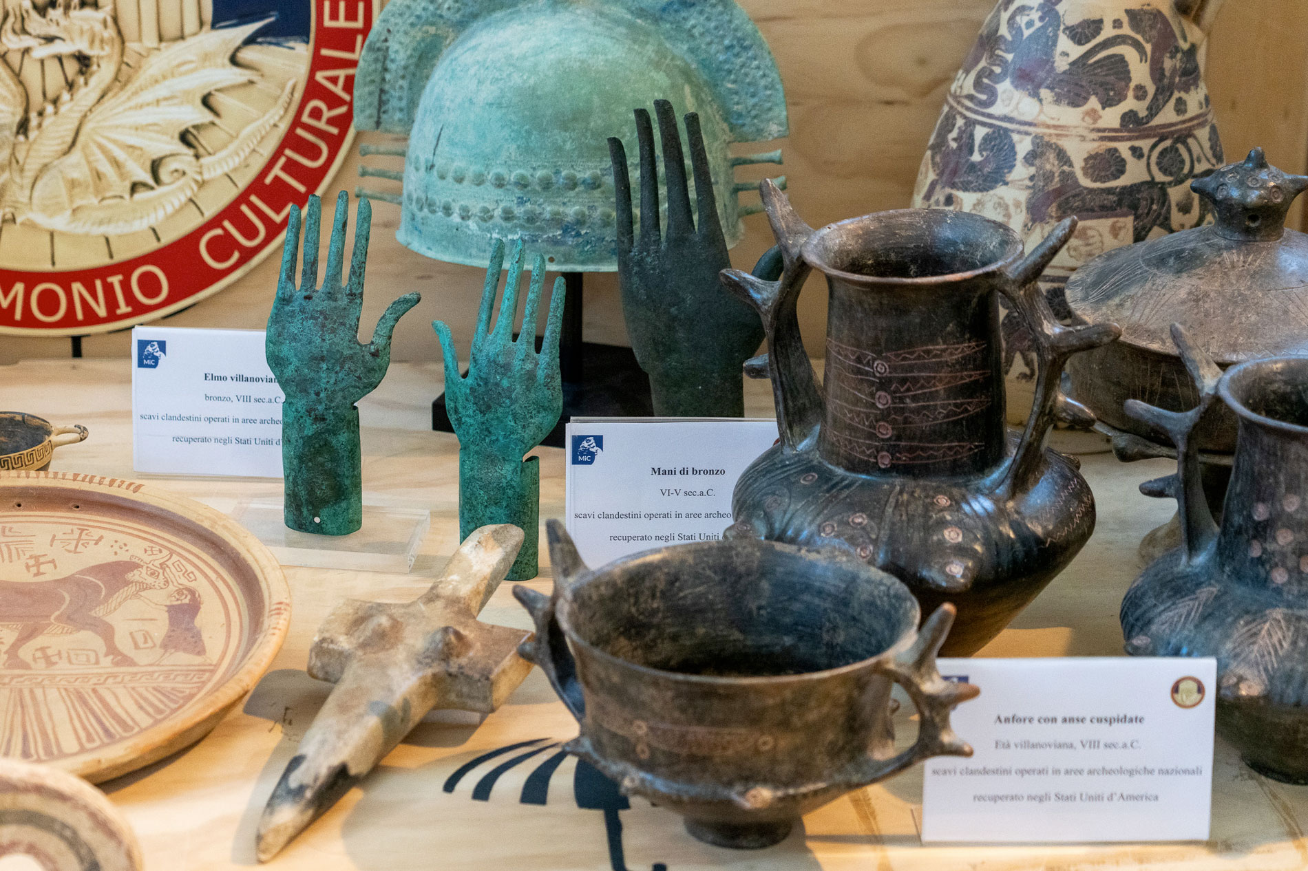 Ανάμεσα στις αρχαιότητες που επαναπατρίστηκαν είναι αρκετά ετρουσκικά αγγεία και μια χάλκινη φιγούρα σε φυσικό μέγεθος, που χρονολογούνται από τον 9ο αι. π.Χ. έως τον 2o αι. μ.Χ. Άλλα έργα που επιστράφηκαν περιλαμβάνουν ελαιογραφίες από τον 16ο και τον 19ο αιώνα που λεηλατήθηκαν από ιταλικά μουσεία, θρησκευτικά ιδρύματα και ιδιωτικές κατοικίες.