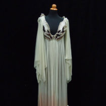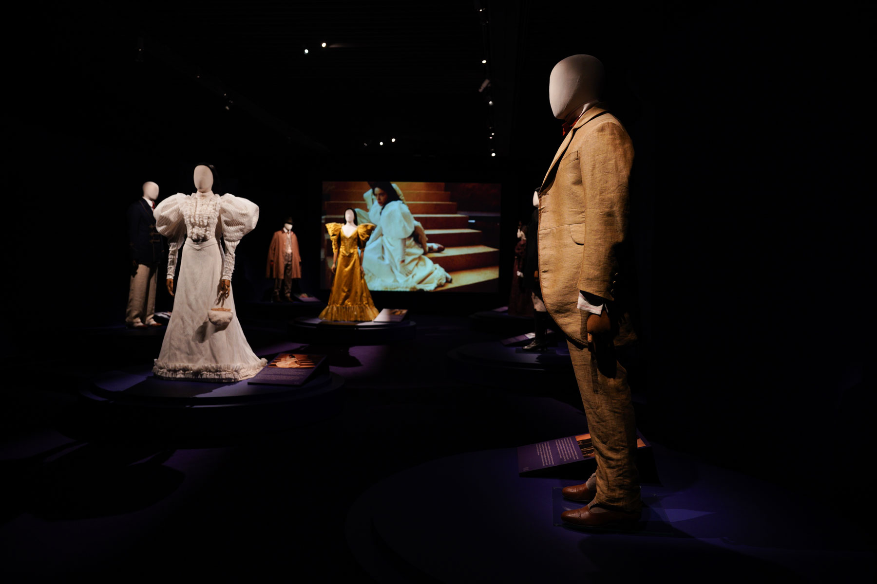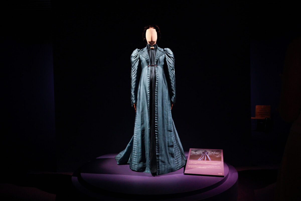 Και τα 12 εξαιρετικά κοστούμια της πρόσφατης και πολυβραβευμένης διεθνούς κινηματογραφικής παραγωγής –τα υπόλοιπα 6 που παρουσιάζονται στην έκθεση έντυσαν τους χαρακτήρες των Godwin Baxter (Willem Dafoe), Duncan Wedderburn (Mark Ruffalo), Max McCandles (Ramy Youssef), Harry Astley (Jerrod Carmichael), Madam Swiney (Kathryn Hunter) και της κυρίας Prim (Vicki Pepperdine)–είναι στημένα εντυπωσιακά με τρόπο που συνομιλούν με την ταινία (σκηνές της προβάλλονται στον τοίχο της αίθουσας) ενώ την ίδια στιγμή προσφέρουν στο κοινό μια μοναδική ευκαιρία: Να τα θαυμάσει από κοντά και να εκτιμήσει άλλη μια διάσταση της τέχνης του ενδύματος.