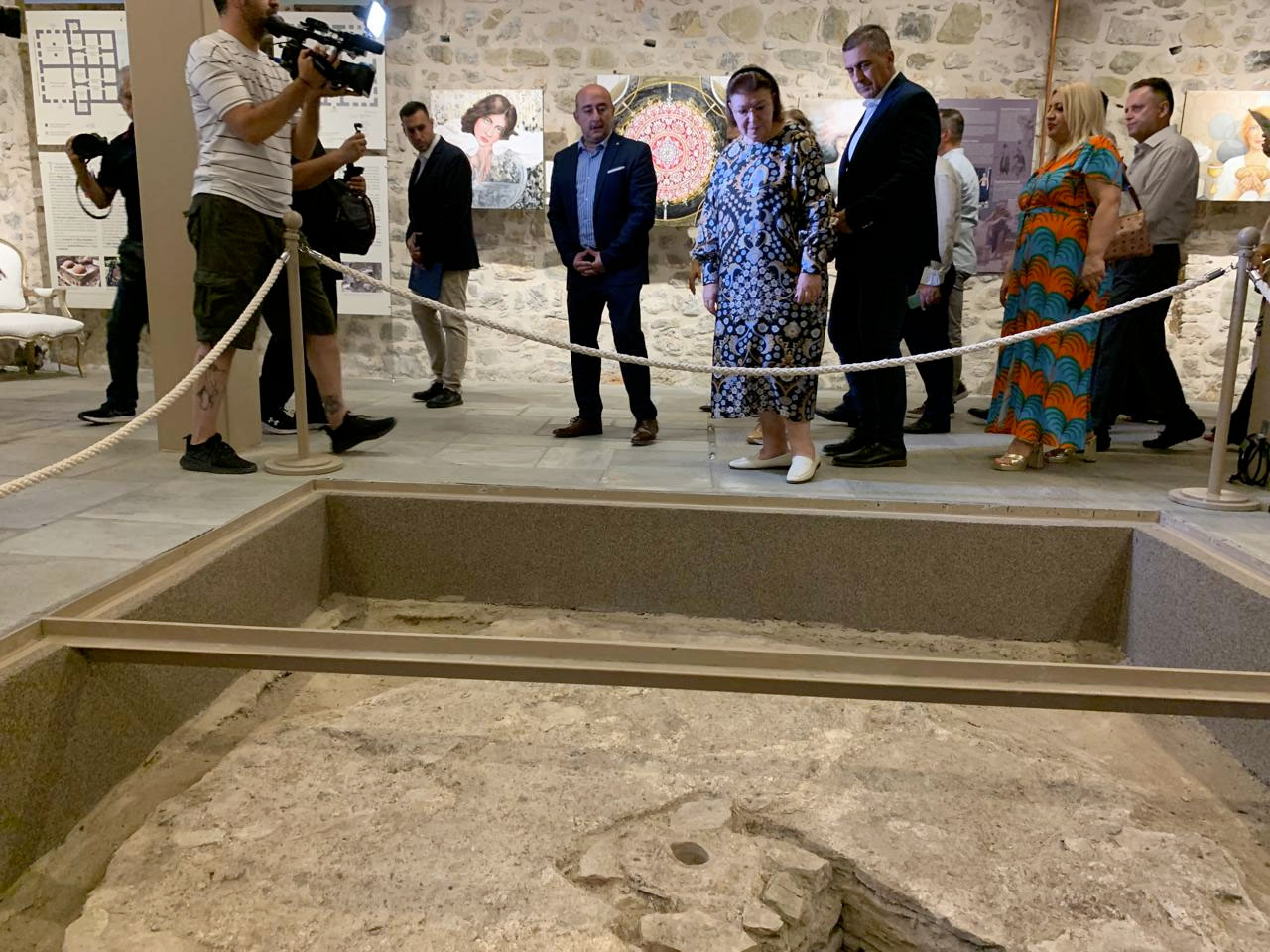 «Το αρχιτεκτονικό συγκρότημα», σημείωσε η Λίνα Μενδώνη στον χαιρετισμό της, «που περιλαμβάνει το αποκαλυφθέν Δίδυμο Οθωμανικό Λουτρό, ιεροδιδασκαλείο, φιλανθρωπικά καταστήματα και το Κουρσούμ Τζαμί, εντάσσεται στο οικοδομικό πρόγραμμα του Οθωμανού διοικητή Οσμάν Σαχ και τοποθετείται στον 16ο αιώνα. Πρόκειται για ανδρικό και γυναικείο λουτρό, με τα δύο αντίστοιχα τμήματα να διατάσσονται συμμετρικά, κατά μήκος δύο παράλληλων αξόνων, χωρίς να επικοινωνούν μεταξύ τους και με ξεχωριστές εισόδους. Τα δίδυμα λουτρά δεν είναι ιδιαίτερα συχνά στον ελλαδικό χώρο. Με την αποκατάσταση του Δίδυμου Λουτρού, αναδεικνύεται η ιστορία και το μνημειακό απόθεμα των Τρικάλων, ενώ και με την ίδρυση του Μουσείου Τσιτσάνη η πόλη αποκτά ένα νέο τοπόσημο. Όλα αυτά αποτελούν ένα τεράστιο κεφάλαιο για την πόλη των Τρικάλων, που πρέπει να αξιοποιηθεί και να αναδειχθεί για το καλό της τοπικής κοινωνίας. Πρέπει να προσφεύγουμε στις ρίζες, στο παρελθόν μας, για να οικοδομούμε ένα ασφαλές μέλλον. Συγχρόνως, ο Πολιτισμός αποτελεί έναν πολύ σημαντικό οικονομικό μοχλό ανάπτυξης, ο οποίος πρέπει να αξιοποιείται στο μέγιστο και να ενδυναμώνει την τοπική οικονομία».