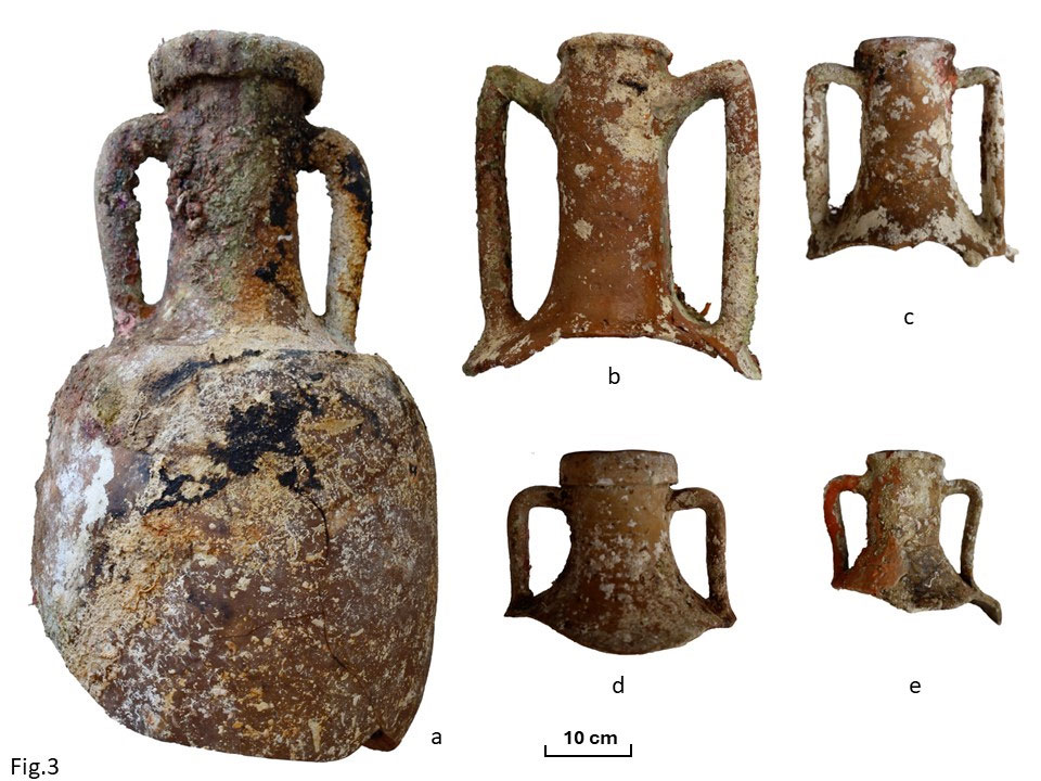 Τα αποτελέσματα της έρευνας πεδίου του 2024 επιβεβαιώνουν την αφθονία των Κώων αμφορέων στον χώρο του ναυαγίου, καθώς και την ύπαρξη Ροδιακών και Εφεσιανών αμφορέων. Οι αμφορείς Lamboglia 2, ωστόσο, αποδείχτηκαν πολύ περισσότεροι από ό,τι αναμενόταν και διαχωρίζονται τυπολογικά σε τρεις επιμέρους κατηγορίες. Ενώ οι γνωστοί τύποι απαντούν και στις δύο περιοχές «Α» και «Β», η έρευνα της Περιοχής «Β» αποκάλυψε την παρουσία τύπων που δεν μαρτυρούνται μέχρι τώρα στην Περιοχή «Α»: αμφορείς από τη Χίο και ροδιακό αμφορέα με στριφτές λαβές.