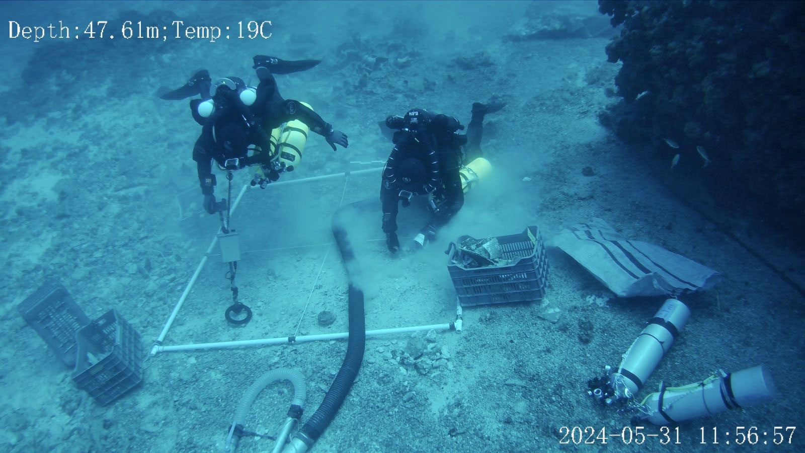 Στην έρευνα πεδίου έλαβαν μέρος ο Αλέξανδρος Σωτηρίου, συνεργαζόμενος ερευνητής του Πανεπιστημίου της Γενεύης και τεχνικός βυθού, και μια ομάδα καταδυόμενων αρχαιολόγων που αποτελούνταν από τους Michelle Creisher (Πανεπιστήμιο της Χάιφα), Isaac Ogloblin (Πανεπιστήμιο της Χάιφα) και Ορέστη Μανούσο, και τους εξειδικευμένους δύτες Νικόλαο Γιαννουλάκη, Στυλιανό Ματσουκατίδη, Χάρη Μήτρου και Δημήτρη Σταμούλη. Η ομάδα συμπληρώθηκε με τη συμμετοχή έξι μελών της Μονάδας Υποβρύχιων Αποστολών του Λιμενικού Σώματος (Ομάδα Ειδικών Καταδύσεων), αποτελούμενη από τους Δημήτριο Χατζηασλάν, Αχιλλέα Γκανέλα, Αθανάσιο Κεϊτζή, Δημήτριο Κιόση, Δημήτριο Κρεμμύδα και Γεώργιο Λυτρίβη.