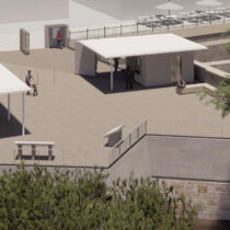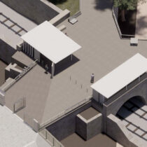 Στην είσοδο επί της οδού Αποστόλου Παύλου αναβαθμίζεται το υφιστάμενο εκδοτήριο και κατασκευάζεται στέγαστρο για τη σκίαση των επισκεπτών, κατά τη διαδικασία έκδοσης εισιτηρίων, του αυτόματου πωλητή νερού και του εκδοτηρίου e-ticket. Για τους χώρους υγιεινής προτείνεται ολική ανακαίνιση των υφιστάμενων εγκαταστάσεων, με προσθήκη νέων, με προδιαγραφές και για ΑμεΑ, αλλά και η αντικατάσταση των παλαιών δικτύων ύδρευσης και αποχέτευσης. Όσον αφορά στον εξοπλισμό, προτείνονται νέοι στύλοι περισχοίνισης, νέες πληροφοριακές πινακίδες, νέα καθιστικά και νέα κιγκλιδώματα.