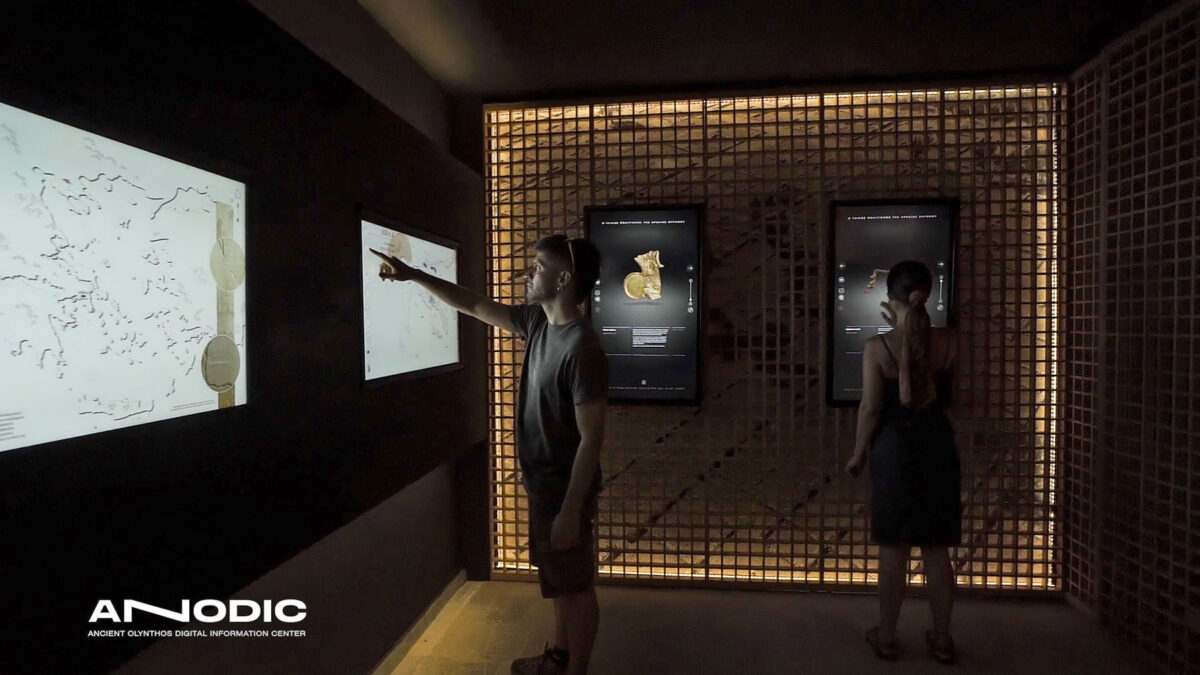 Με τον εκσυγχρονισμό της υπάρχουσας αίθουσας πληροφόρησης μέσα στον αρχαιολογικό χώρο και τη μετατροπή της σε ένα σύγχρονο Ψηφιακό Κέντρο Πληροφόρησης με την ονομασία AnODIC (Ancient Olynthos Digital Infomation Center) δημιουργήθηκε ένα ελκυστικό, διαδραστικό περιβάλλον που προσφέρει στον επισκέπτη με εύληπτο και ψυχαγωγικό τρόπο την πορεία της σημαντικής αυτής πόλης μέσα στον χώρο και στον χρόνο, με κείμενα στα ελληνικά και τα αγγλικά, φωτογραφίες, σχέδια, αναπαραστάσεις.