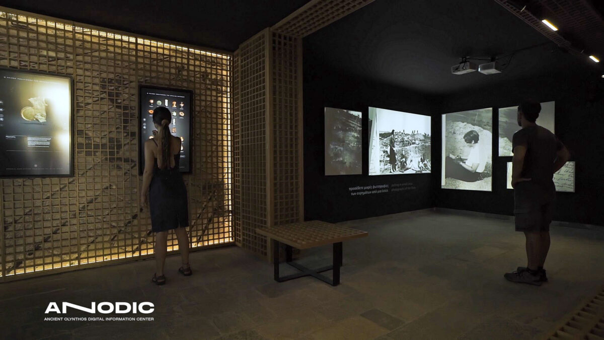 Ο υλικός πολιτισμός της αρχαίας Ολύνθου ζωντανεύει μέσα από τρισδιάστατα μοντέλα που μπορεί ο επισκέπτης να «αγγίξει» και να μελετήσει από όλες τις πλευρές, με οδηγό τα εύληπτα κείμενα που τα συνοδεύουν.