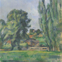 Το Τοπίο με λεύκες του Cézanne δημιουργήθηκε μεταξύ του 1885 και του 1887 και χρονολογείται περίπου την ίδια περίοδο με την Αυτοπροσωπογραφία του, έργο της μόνιμης Συλλογής του Ιδρύματος, δίπλα στην οποία έχει τοποθετηθεί. Αναπαριστά ένα χαρακτηριστικό τοπίο της Προβηγκίας κατά την καλοκαιρινή περίοδο και έχει ιδιαίτερο ενδιαφέρον να το συγκρίνει κανείς με το Τοπίο της Auvers-sur-Oise του ίδιου καλλιτέχνη, που εκτίθεται στη διπλανή αίθουσα.