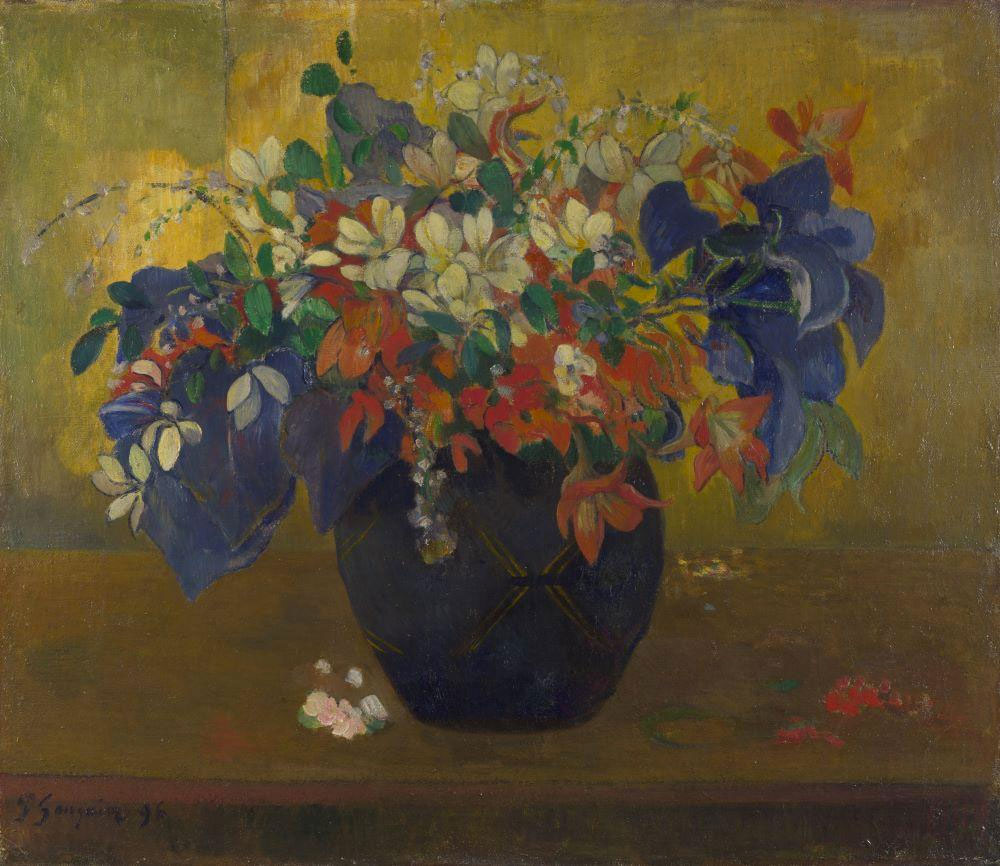 Η Νεκρή φύση με ανθοδοχείο του Gauguin, που δημιουργήθηκε το 1896 λίγους μόλις μήνες μετά την άφιξη του Gauguin στην Ταϊτή, έχει τοποθετηθεί δίπλα ακριβώς από το έργο της μόνιμης Συλλογής Νεκρή φύση με γκρέιπφρουτ, το οποίο ο ίδιος καλλιτέχνης ζωγράφισε περίπου πέντε χρόνια αργότερα, όταν είχε εγκαταλείψει την Ταϊτή για τις Μαρκήσιες Νήσους. Η σπουδή της νεκρής φύσης ήταν ανέκαθεν ελκυστική για τον Gauguin και τα δυο αυτά έργα, αρκετά παρόμοια σε μέγεθος, απεικονίζουν θαυμάσια την ικανότητά του να συνδυάζει τις προηγούμενες επιρροές του και την υψηλή του μαεστρία στη σύνθεση με μια ακόμα πιο απλοποιητική προσέγγιση που κυριαρχείται από το χρώμα.