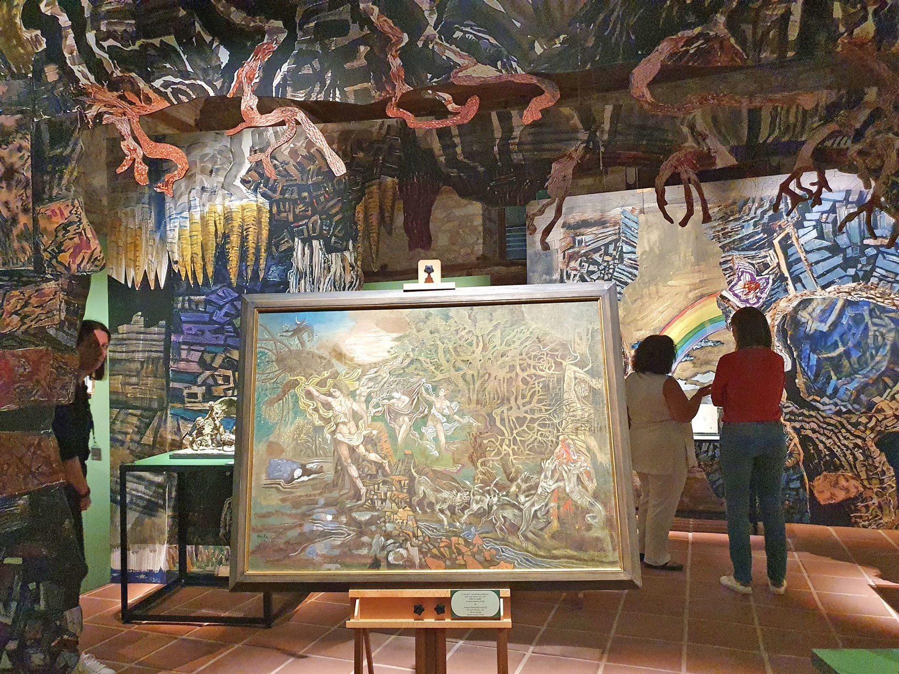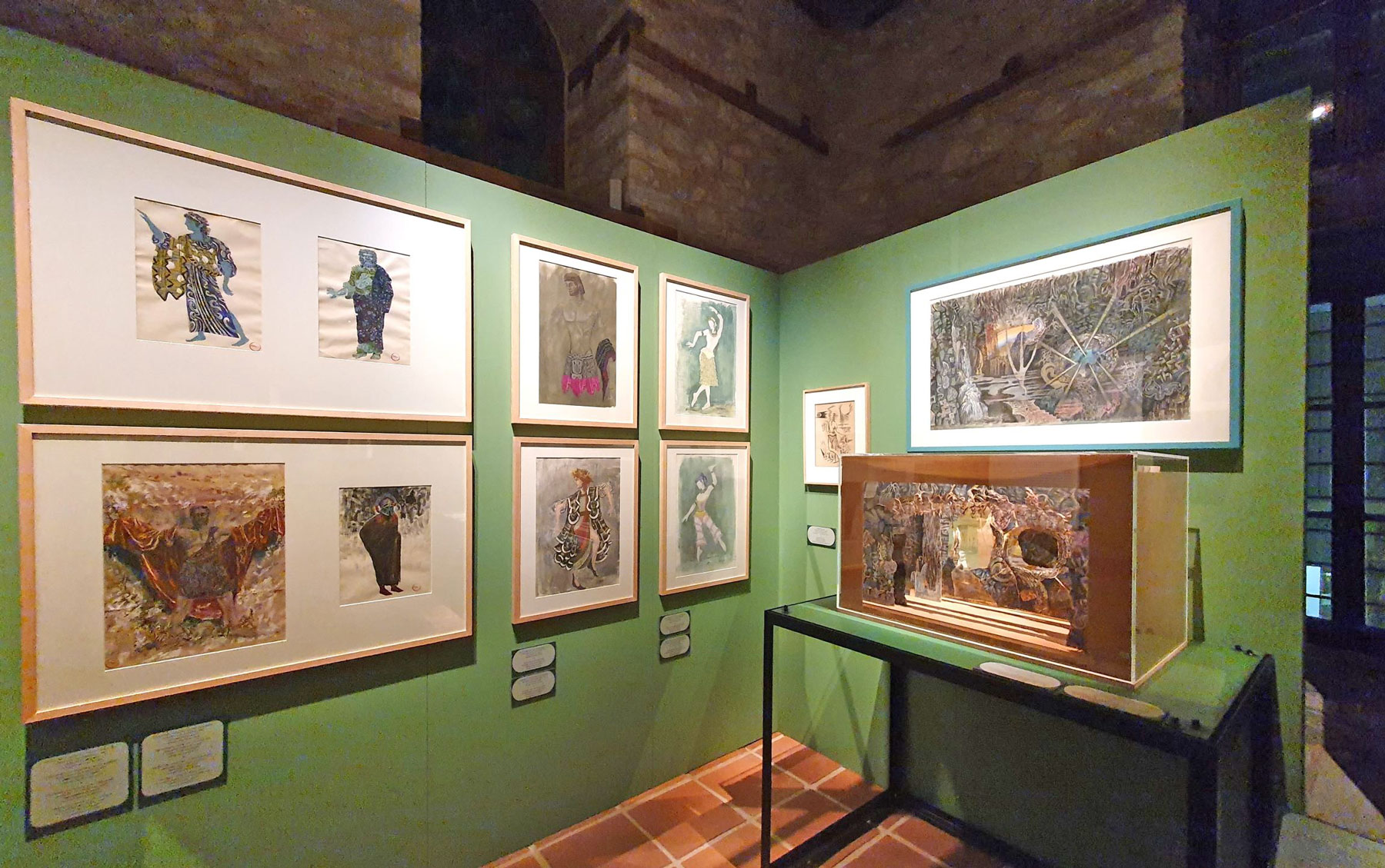 Η αποτύπωση του σκηνικού το οποίο σχεδίασε ο Γκίκας για το χορόδραμα της Περσεφόνης, που ανέβηκε στο Covent Garden του Λονδίνου το 1967, δεσπόζει στον εσωτερικό χώρο στο Σαντιρβάν τζαμί. Ουσιαστικά ο επισκέπτης έχει την αίσθηση ότι περπατά μέσα στον Kάτω Kόσμο που δημιούργησε ο Έλληνας εικαστικός για τις ανάγκες της συγκεκριμένης παράστασης. Μάλιστα, στο Σαντιρβάν τζαμί παρουσιάζεται και η μοναδική σωζόμενη μακέτα από την παράσταση, η οποία υπάρχει στη συλλογή του Μουσείου Μπενάκη. Ολόκληρος, λοιπόν, ο σχεδιασμός της έκθεσης είναι βασισμένος πάνω σε αυτή τη μακέτα.