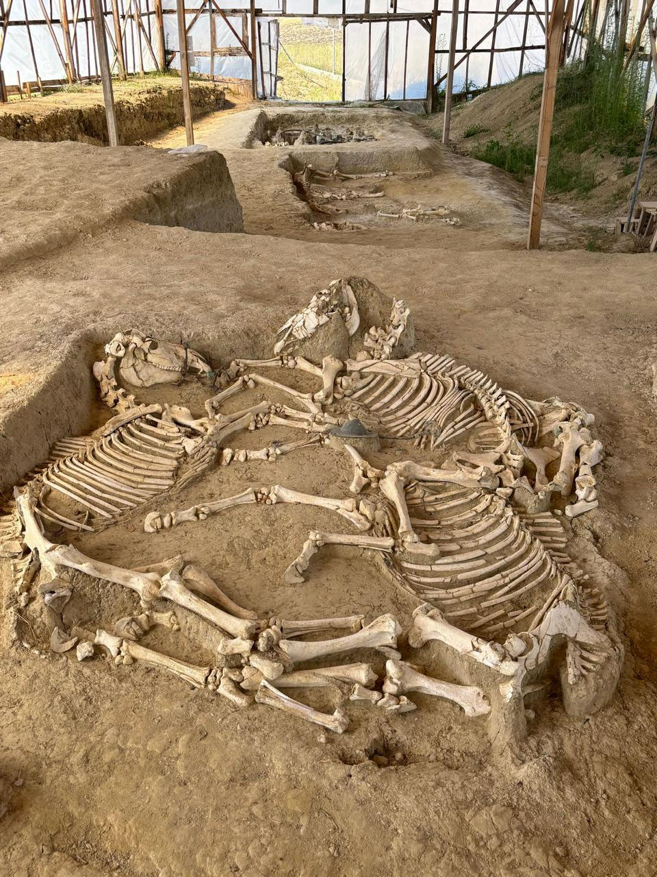 Σημειώνεται ότι στα κινητά ευρήματα της ανασκαφής περιλαμβάνονται πολυάριθμα κτερίσματα, μεταλλικά εξαρτήματα των αμαξών, διακοσμητικά στοιχεία από την ιπποσκευή των αλόγων, αλλά και οργανικά υλικά. Στα κτερίσματα περιλαμβάνονται 19 χάλκινα ακέραια αγγεία, τα οποία συγκροτούν το μεγαλύτερο σύνολο χάλκινων αγγείων που έχει εντοπιστεί στην Ελλάδα. Τέλος, δύο χάλκινες ιατρικές εργαλειοθήκες χειρουργικών εργαλείων είναι διεθνώς οι καλύτερα διατηρημένες εργαλειοθήκες αυτοκρατορικών χρόνων.