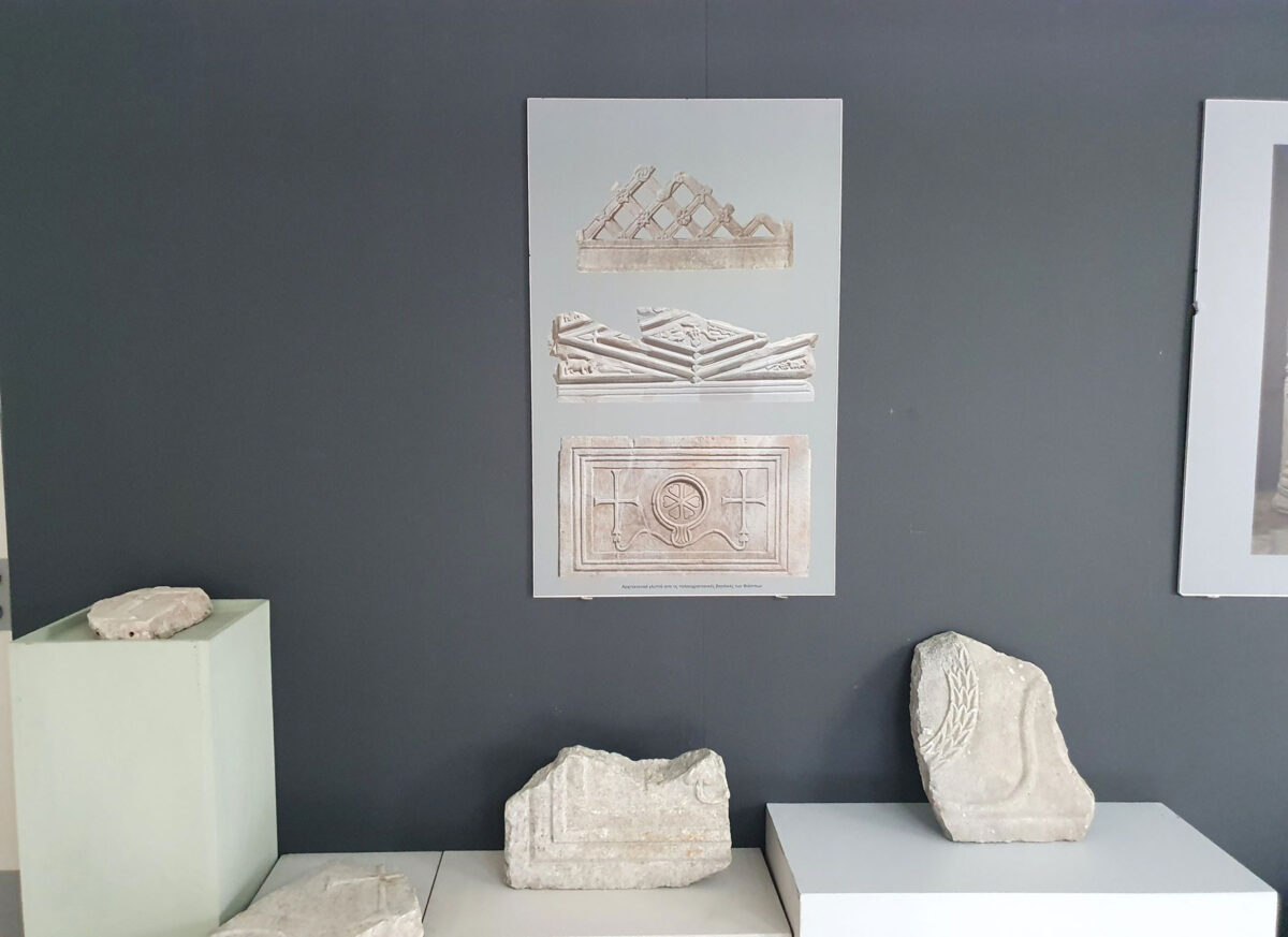 «Τον 5ο και τον 6ο αι. μ.Χ.», συνεχίζει η κα Δαδάκη, «ιδρύθηκαν μεγάλα θρησκευτικά οικοδομήματα, τα οποία με τη θέση και όψη τους άλλαξαν τον πολεοδομικό ιστό και την εικόνα της πόλης των Φιλίππων. Οι ναοί διακοσμήθηκαν με περίτεχνα αρχιτεκτονικά γλυπτά, μερικά από τα οποία απηχούν την τέχνη της Βασιλεύουσας. Στην περιοδική αυτή έκθεση εκτίθενται θραύσματα από κιονόκρανα κοσμημένα με κεφαλές κριαριών και αετούς, καθώς και τμήματα θωρακίων που προέρχονται από τις παλαιοχριστιανικές εκκλησίες των Φιλίππων».